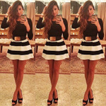 秋冬新速卖通EBAY热卖源黑白横条纹半身裙迷你裙现货