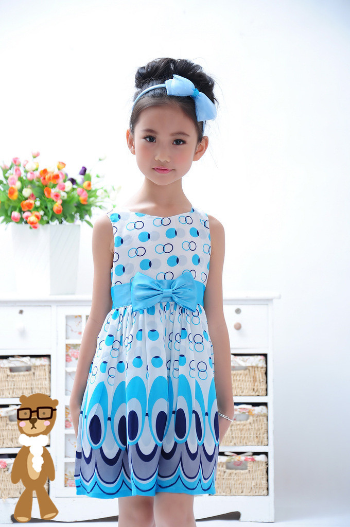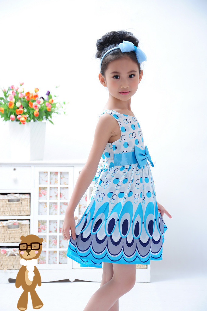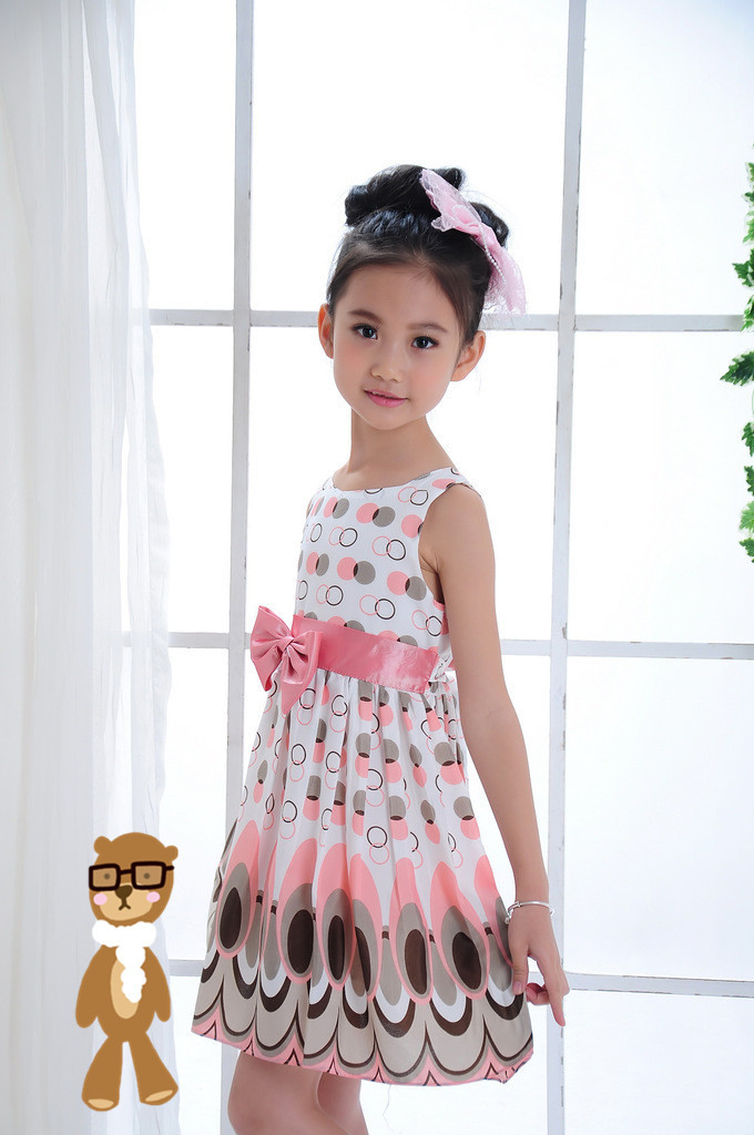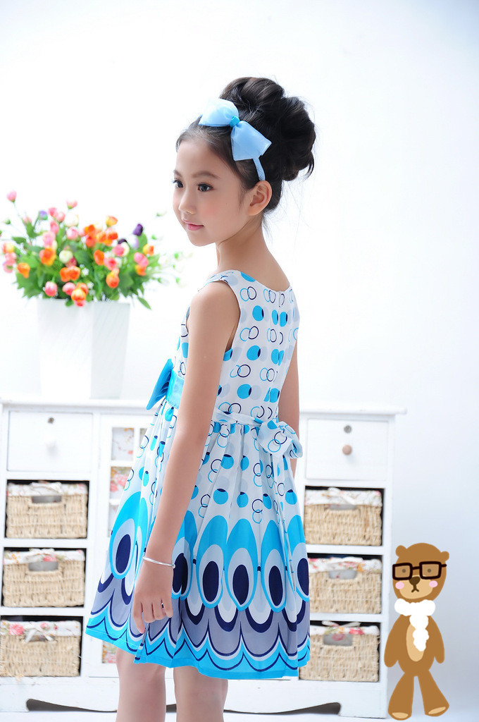 2015全世界速卖通热门新产品女童豹纹无袖连衣裙腰带花豹纹叠层公主裙