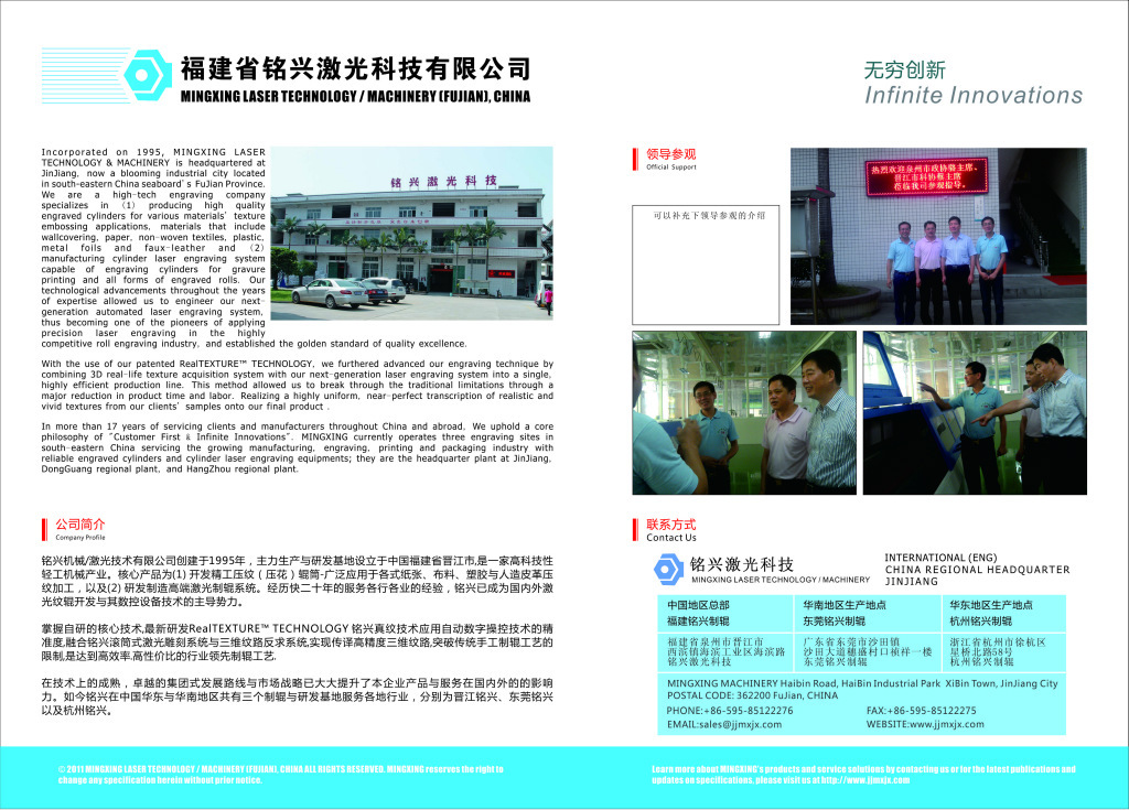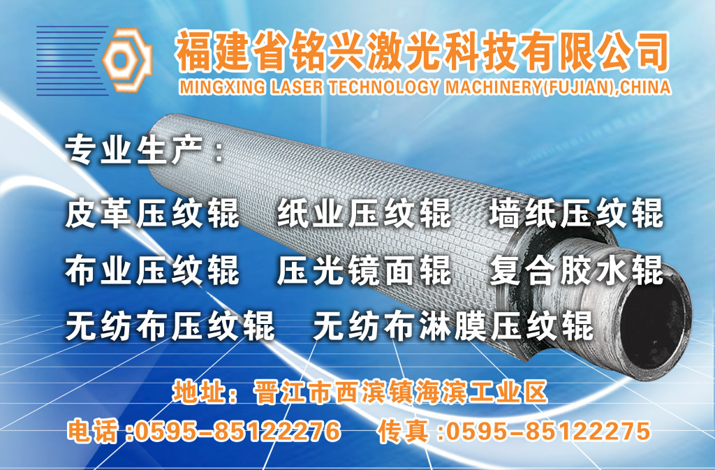 3.产品称呼:该产品统称为压花辊或压纹辊,但根据压制产品的材料,款式或目的,可以划分为:网纹辊,皮革压花辊,墙纸辊,镜面辊,餐巾纸卷,涂饰辊,流延膜消光辊,雾面辊,磨砂辊,透明纸卷,热轧辊等。