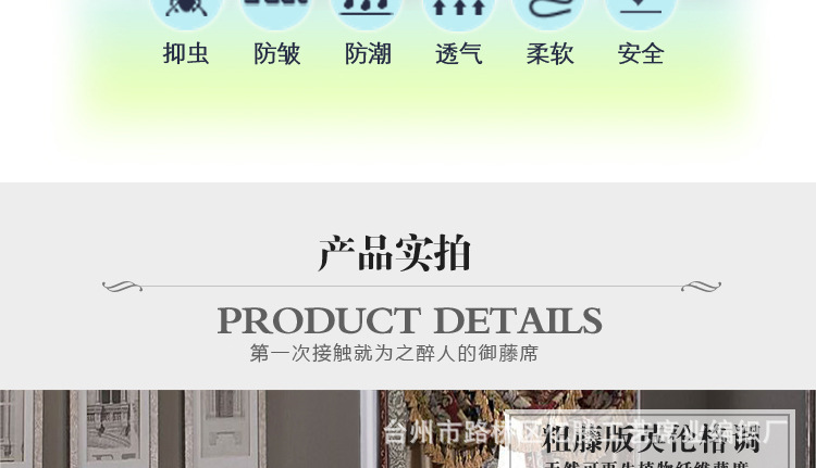 我厂专业生产纸草布,王国藤制垫子,冰丝垫子,各类空调机垫子,枕头垫,枕套,坐垫套,沙发垫,地板垫等各种标准的产品。