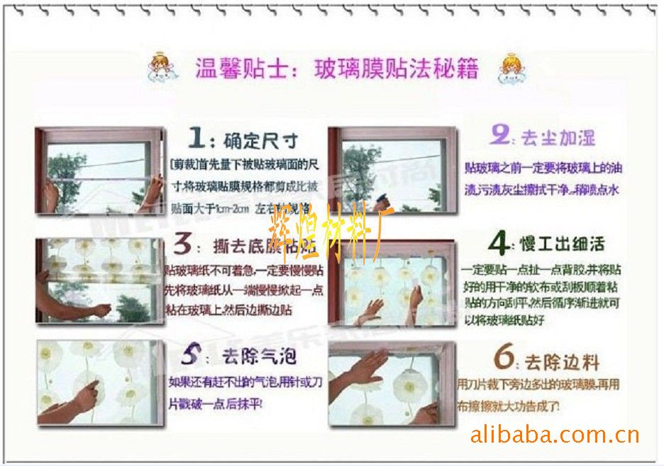 特征:玻璃贴纸,不干胶。