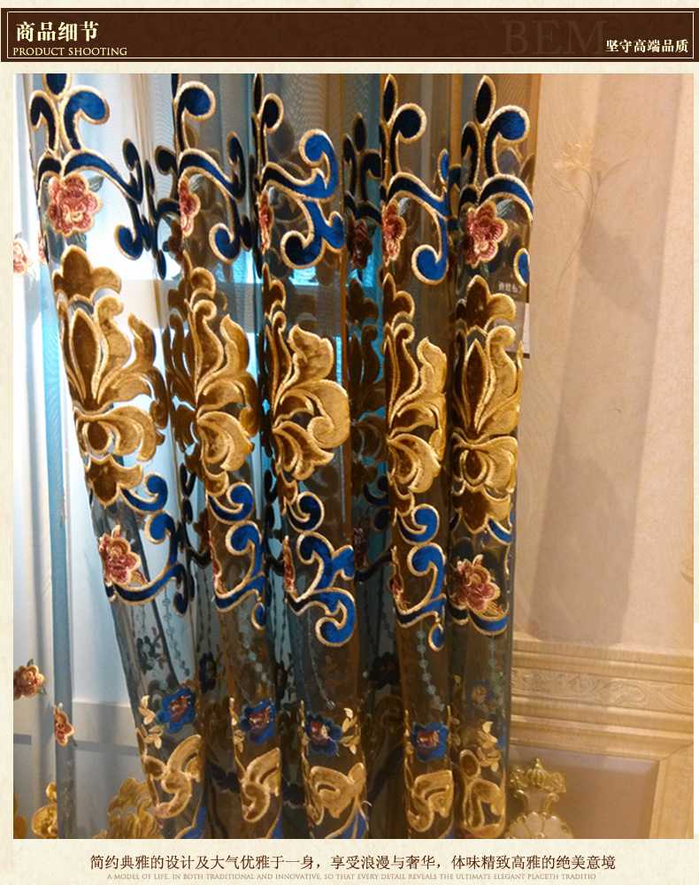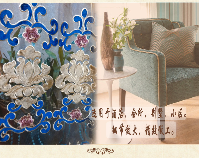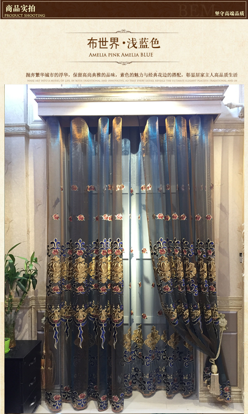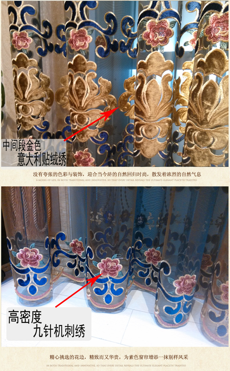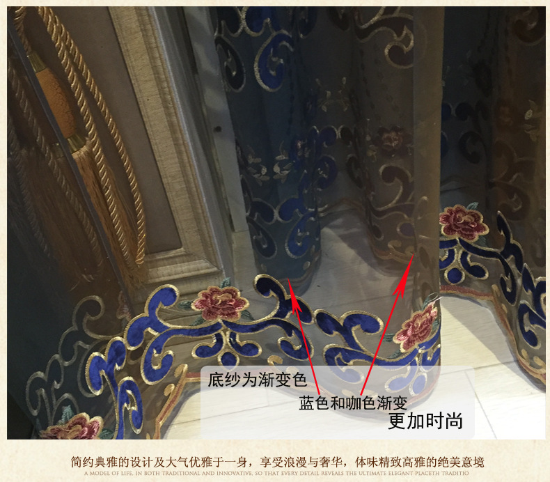 高端欧美风格渐变蓝咖啡色意大利贴绒绣花纱厂家直销批发窗帘面料