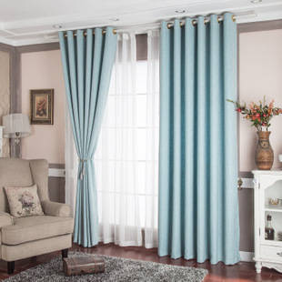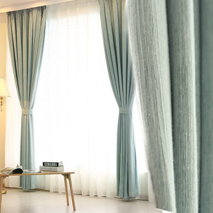 深圳bluepink纯色亚麻布现代韩式遮光成品定制窗帘面料厂家代发