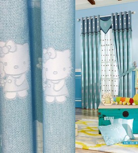 深圳孩童房粉红蓝色cartoonKT猫棉亚麻提花遮光男孩女孩卧室成品窗帘面料