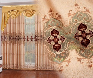 米黄仿丝金线布空心水溶性绣花欧式天鹅绒窗帘布厂家直销批发成品