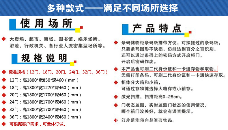 - 颜色12门自编码柜,12门条形码柜,12门智能IC卡柜,12门指纹柜,12门投币柜,定制定金
