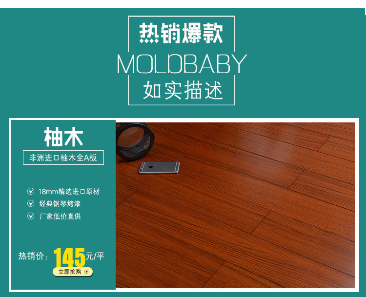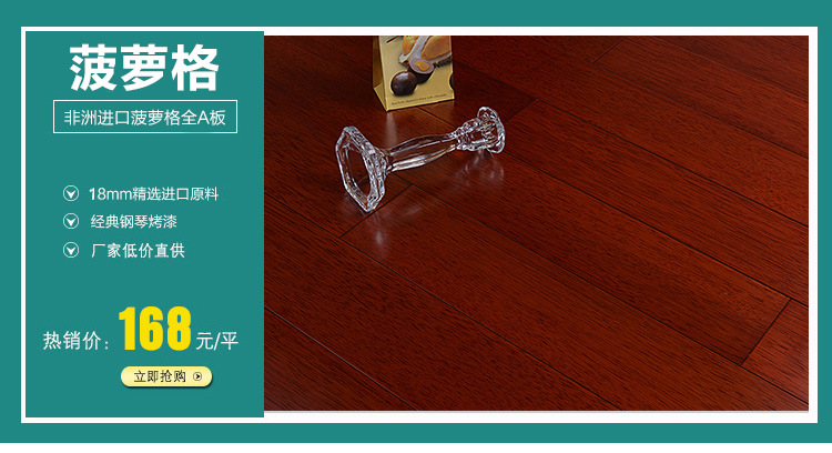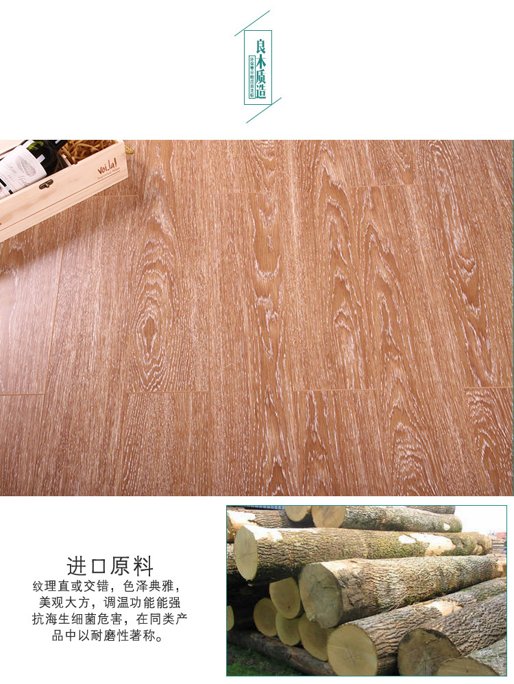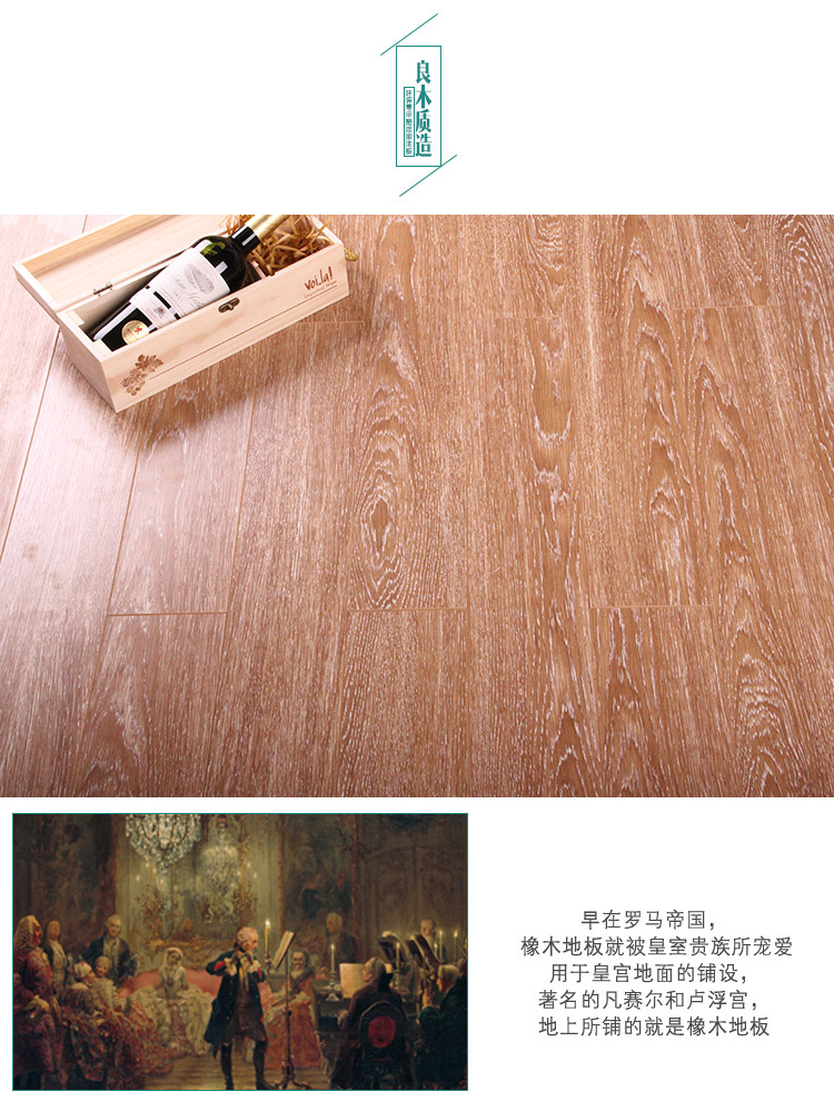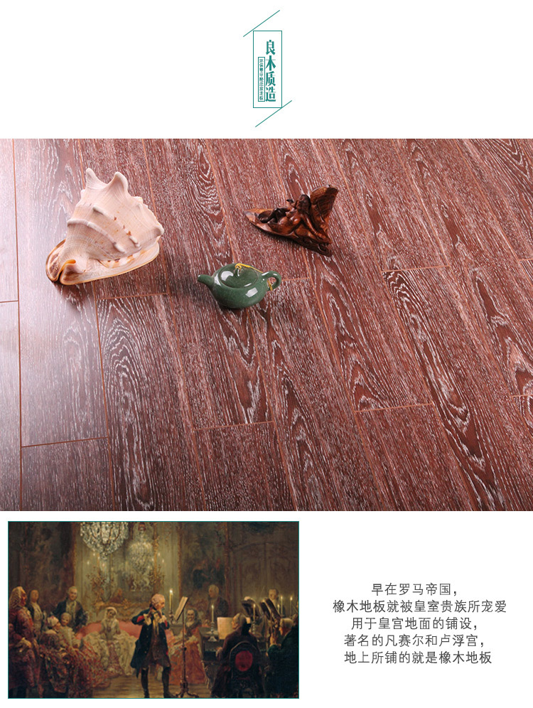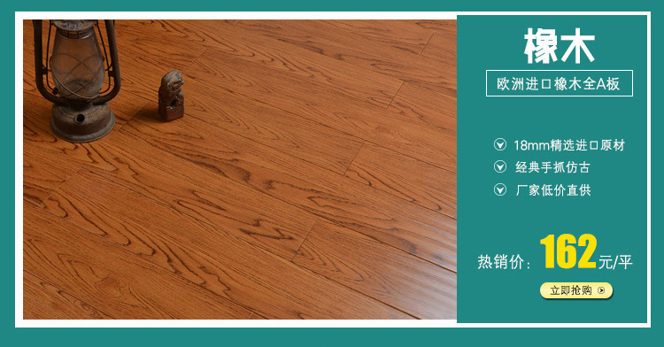 产品详情:1.实木地板是将木材干燥加工而成的地板装饰材料,具有自然花纹,手感舒适,使用安全的特征。它是寝室,客厅,书屋等地板装饰的完美材料。实木的装饰风格回归基本,质感自然。如今,当丛林覆盖率降低,不遗余力推广环境保护时,实木地板变得越来越贵重。实木地板的缺陷在于其耐湿和耐阳光性差。水分会导致天然木材膨胀,干燥会使木材收缩,从而引致裂纹甚至弯曲。地板加热的使用对实木地板的加工和选择有很高的要求,因此在实木地板中很少有特别的实木地板加热市场,但很少。