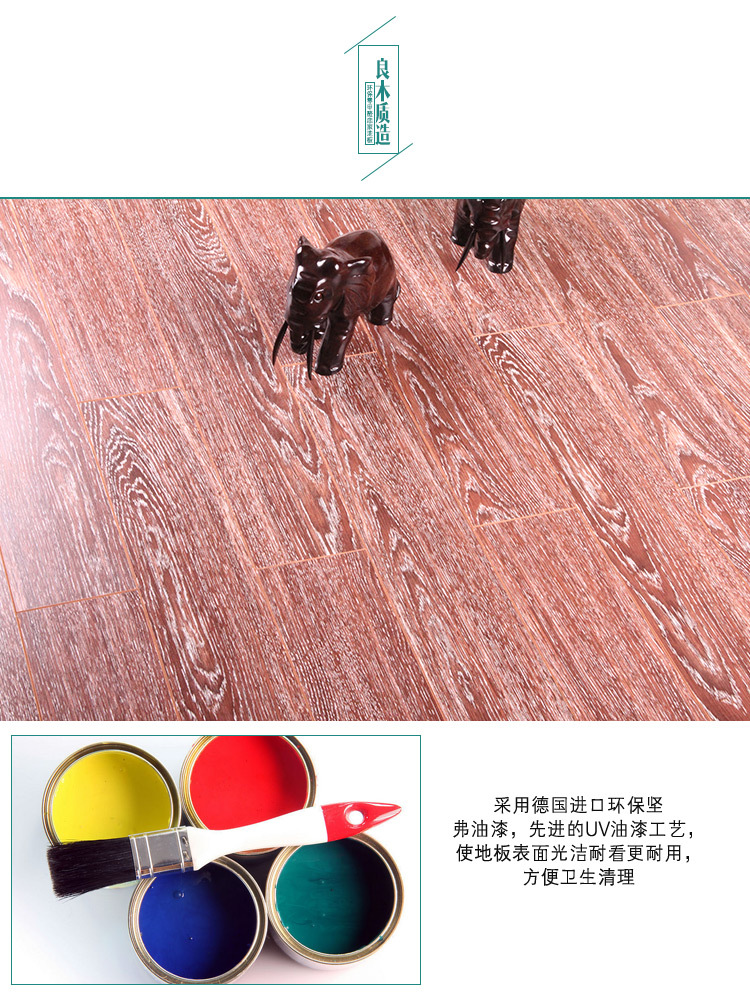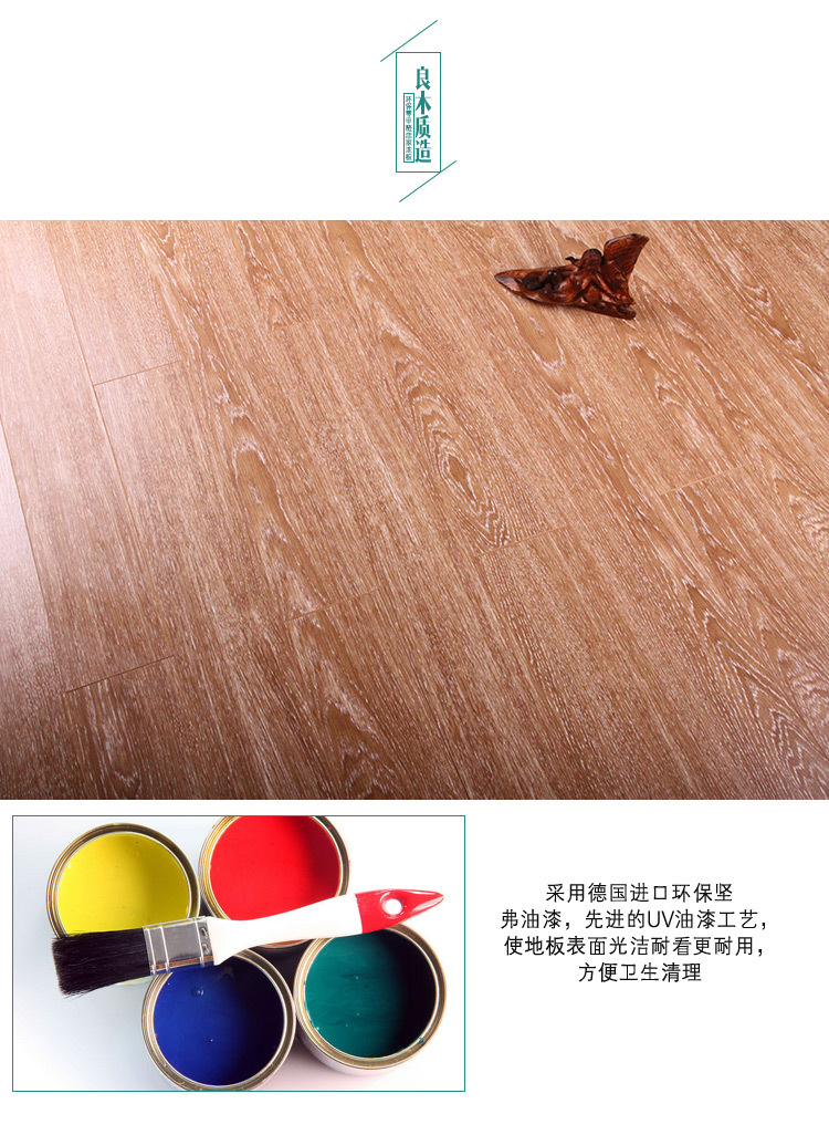 强化地板不需要上喷漆或上蜡,它被普遍使用并且容易维护。它是最适合现代家庭生活旋律的地板材料。此外,强化地板的木材使用率很高,这是一种非常好的环保材料。[2]