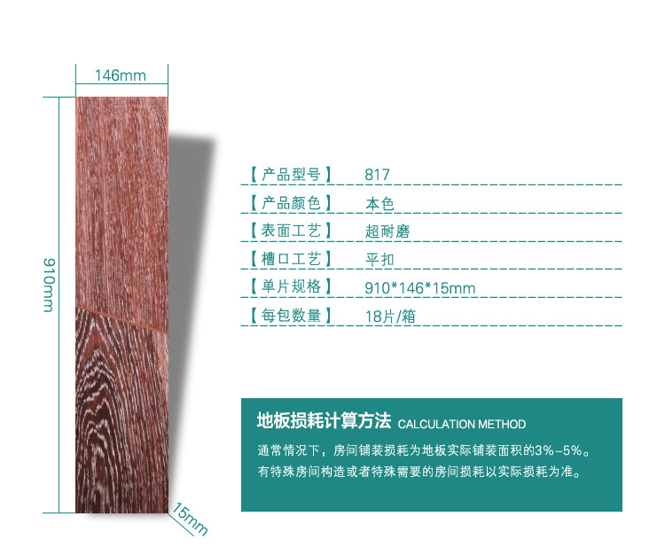 强化复合木地板是近年来大行其道的地面材料。正式的科学称谓:浸渍纸层压木地板,将原木压碎后填入胶水,防腐剂和添加剂,并在高温和高温下通过热压机开展处理高压力。因此,它冲破了原木的物理构造,克服了原木稳定性差的缺点。复合地板强度高,基准均匀,耐磨性高,耐腐蚀,防蛀,装饰效果好,克服了原木的毛病。伤疤结,虫眼和原木表面的色差。