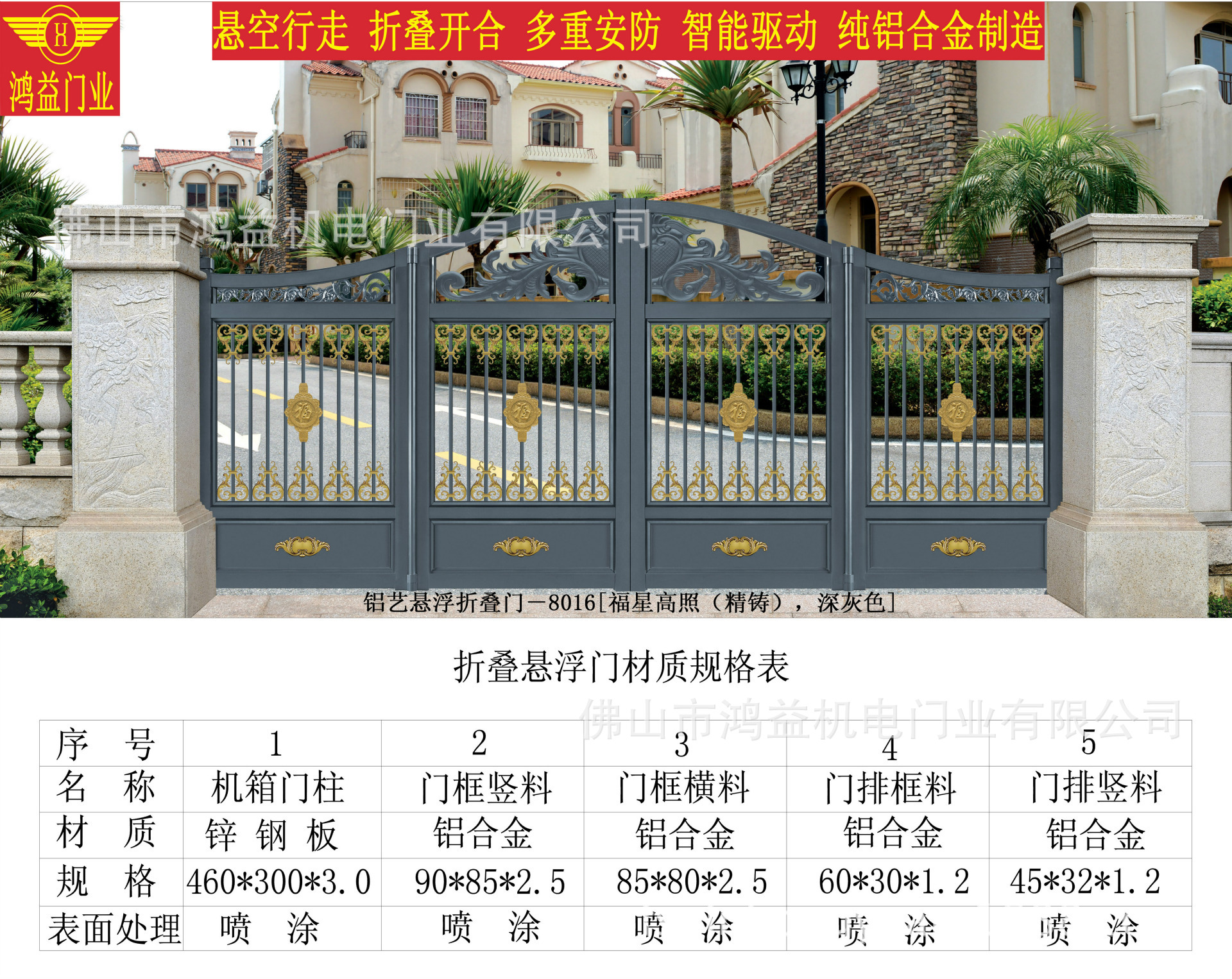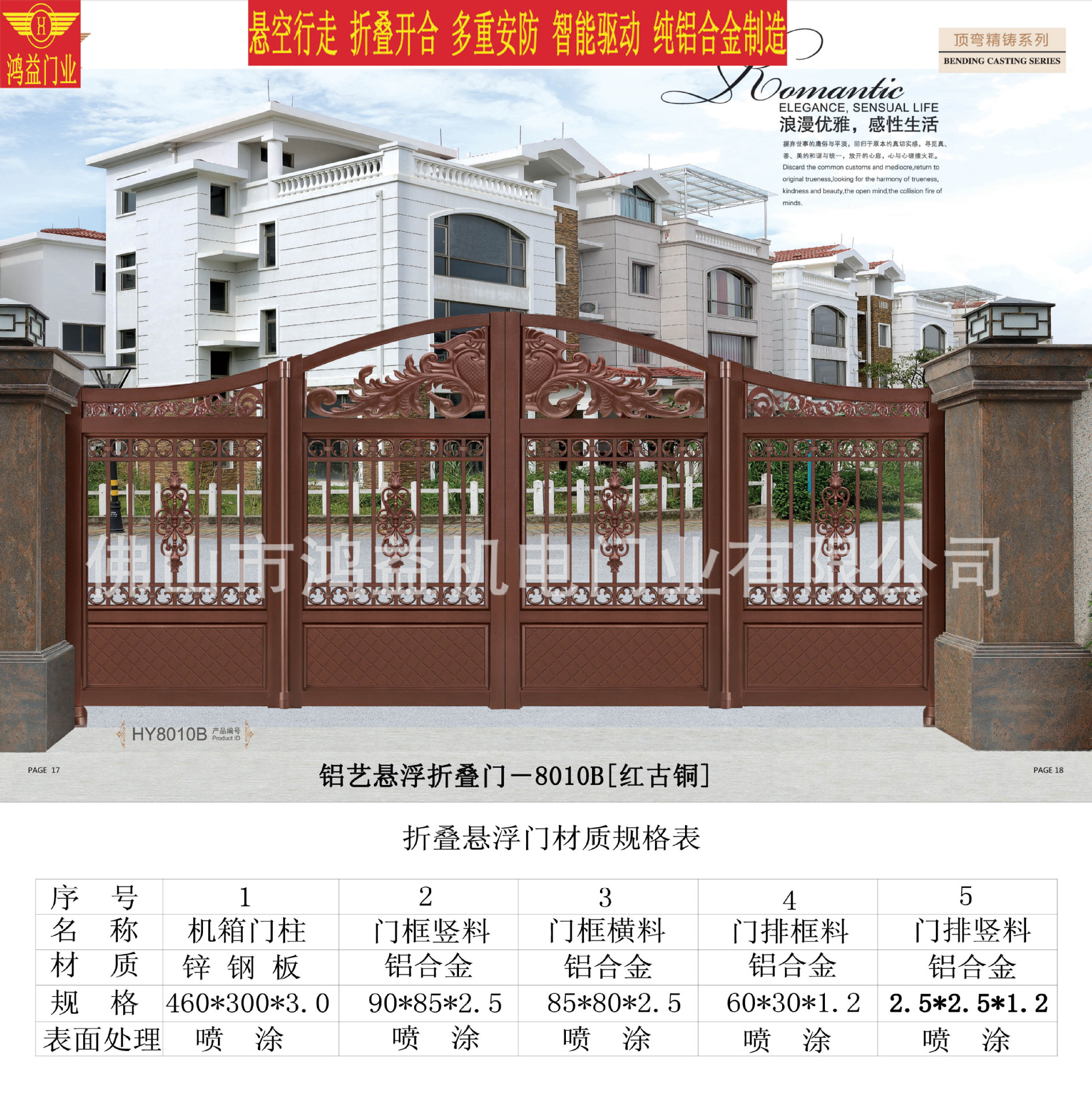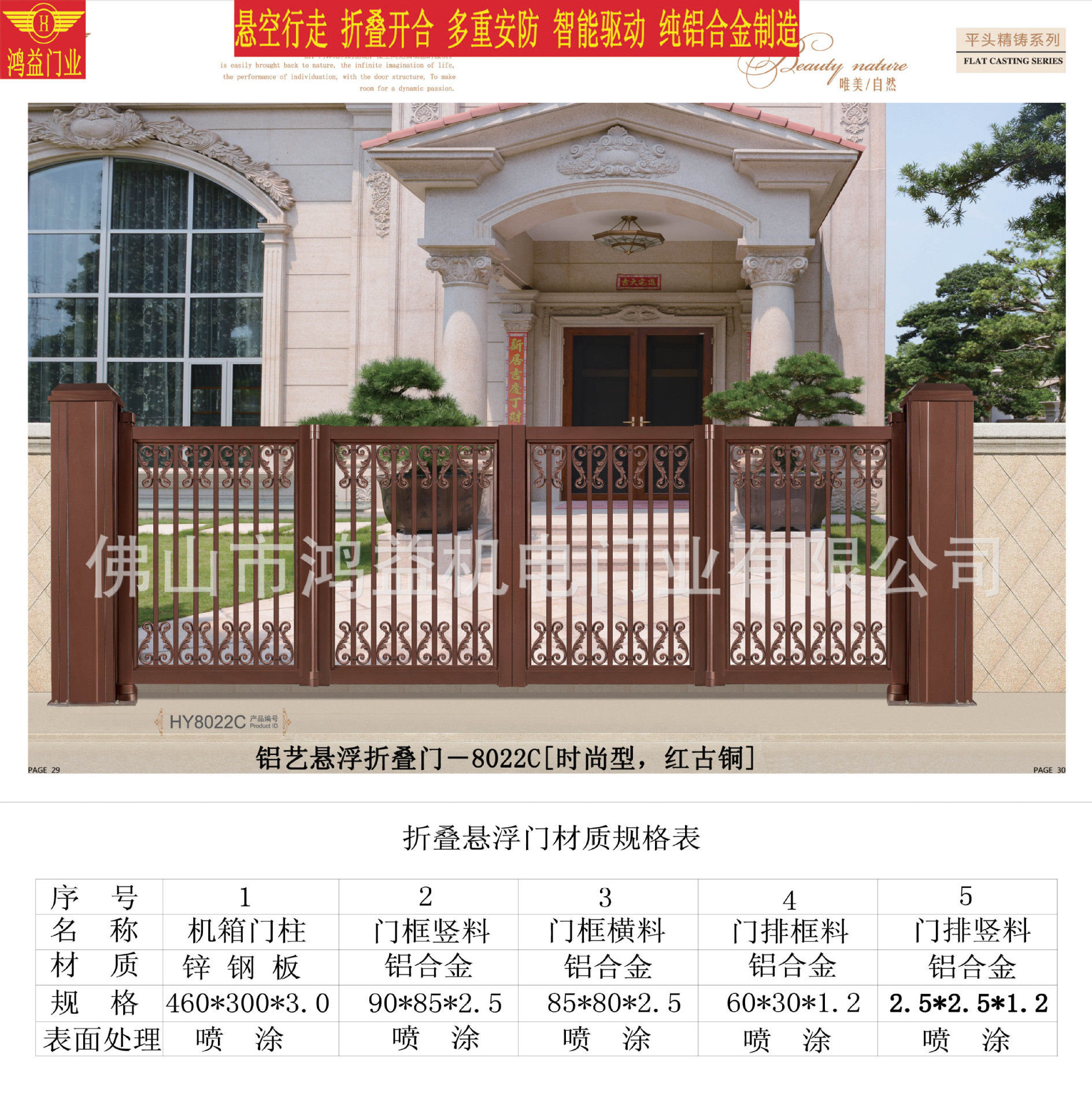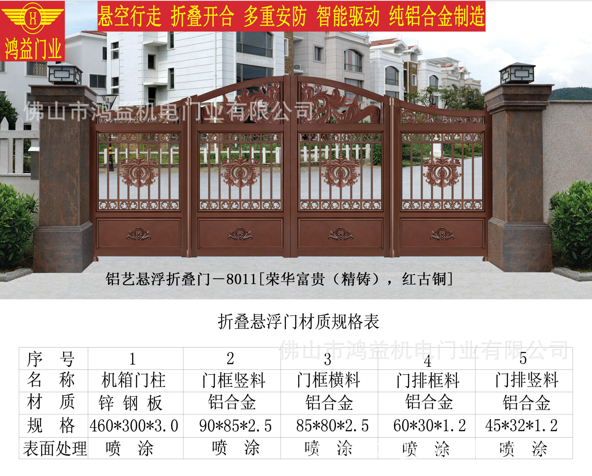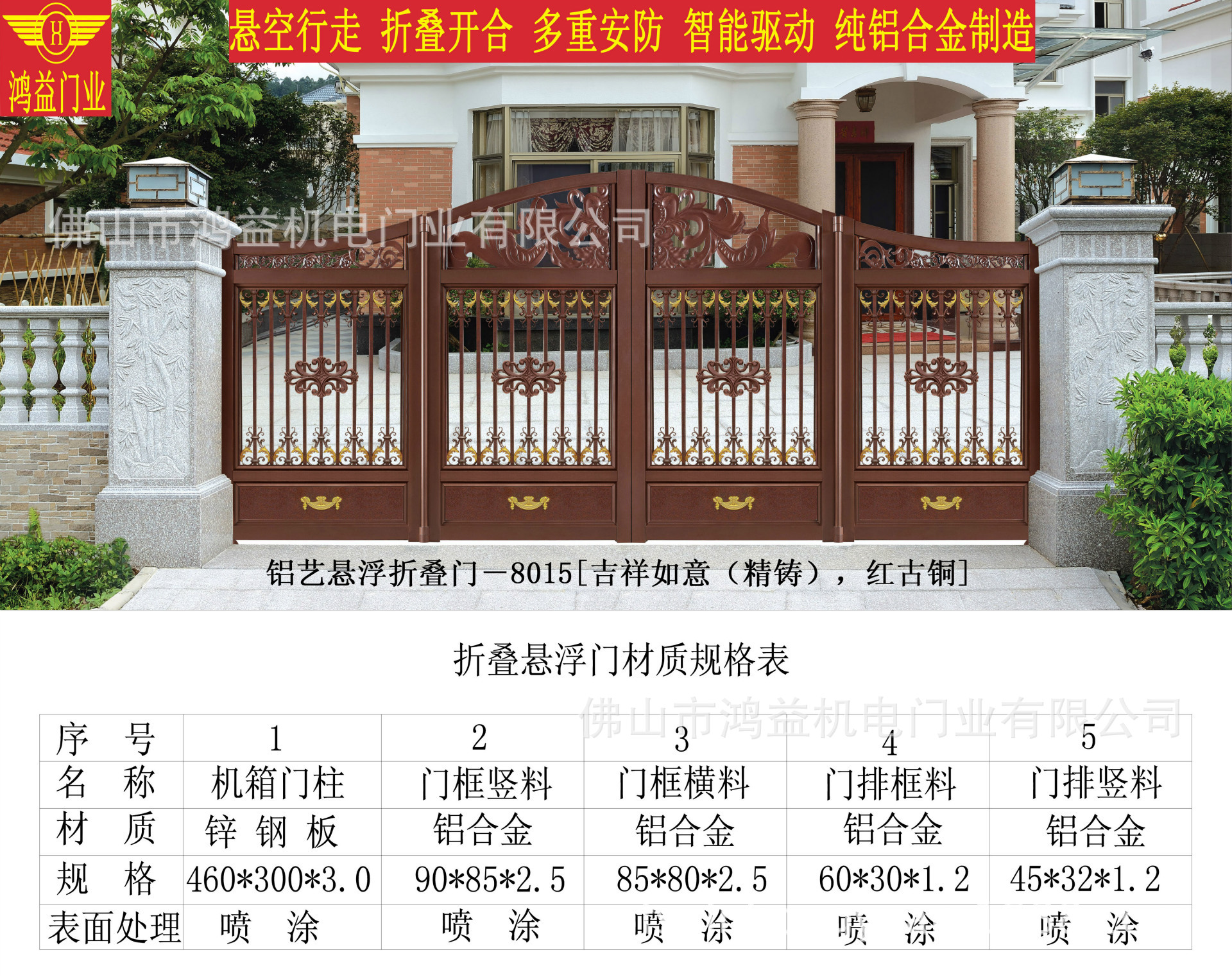 崇敬的客户:您好。我们公司在线销售多种产品型号,产品不停更新,可以根据客户要求展开定制。网站上显示的产品价钱仅供参考,愿意客户会知道。对于特定价钱,请通过电话或在线关系我们公司开展详尽咨询和谈判。我们将竭诚为您服务。鸿益机电门业智能铝艺折叠式别墅门诞生了,掀起了行业变革。世界上第一个独家专利技术,智能铝艺浮动式折叠门是鸿益机电门业公司一个震世的作,立刻获取了成功。产品一经推出便赢得了市场的赞誉和普遍认可。该产品的技术含量和性能优势是其他门产品所无法比拟的;