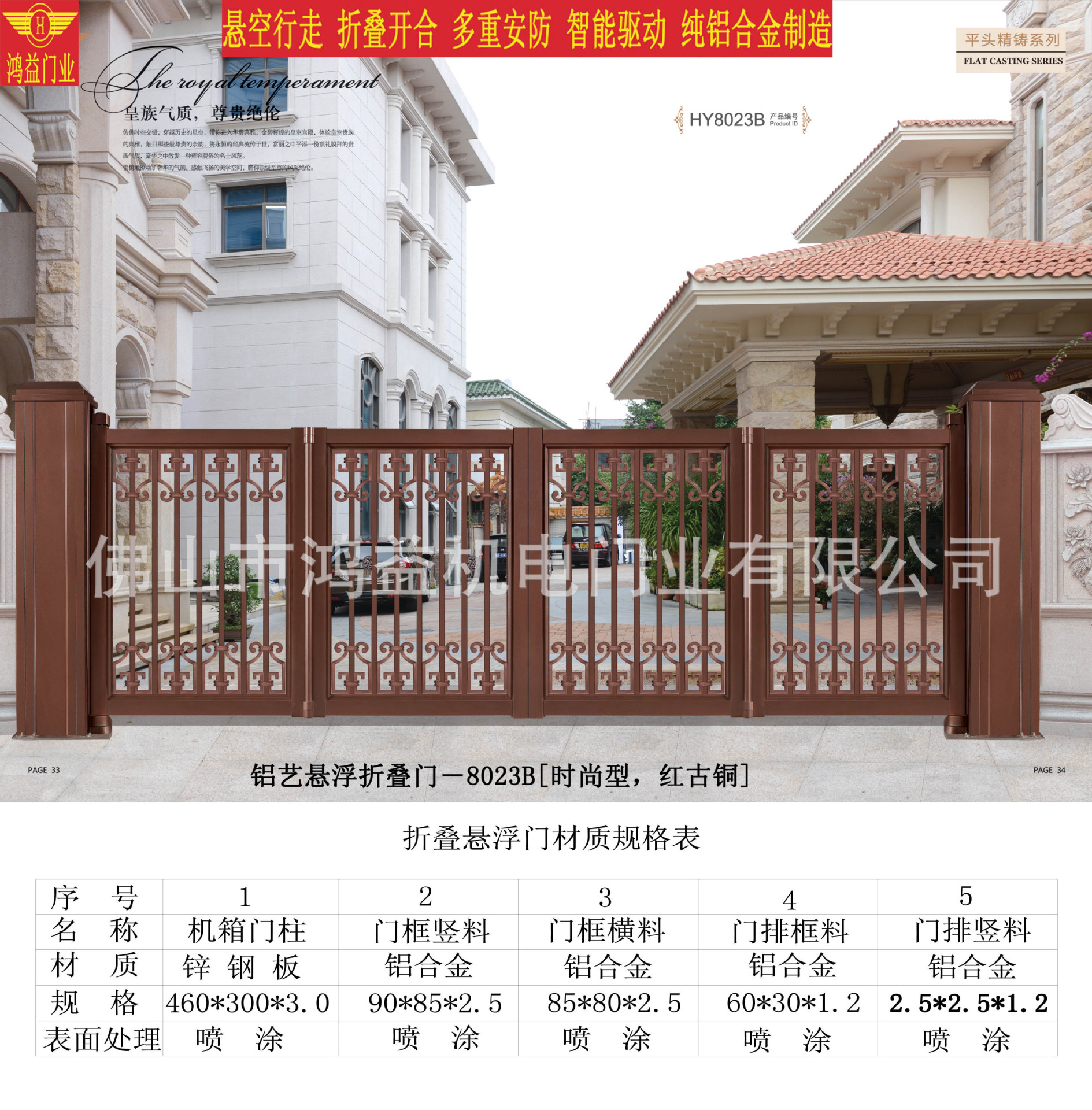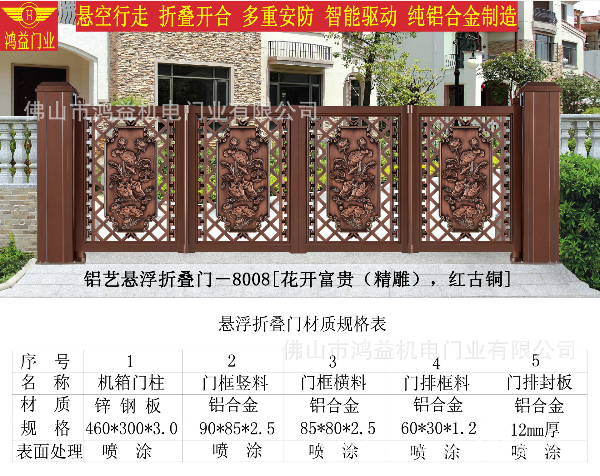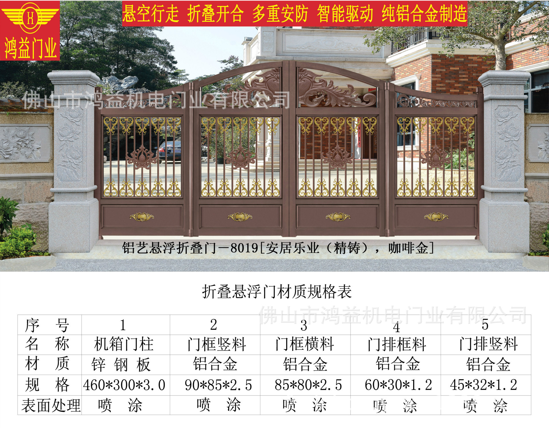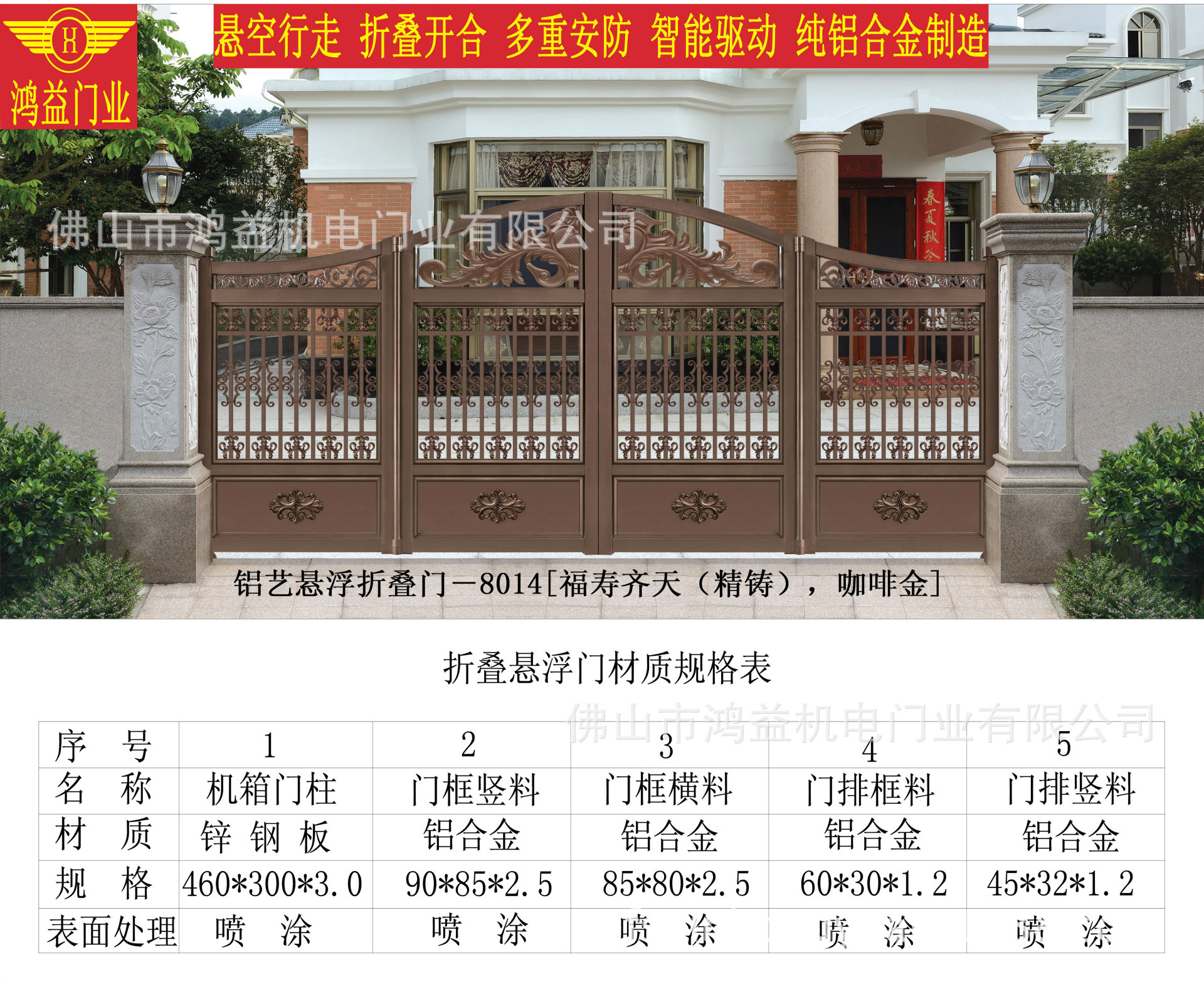 崇敬的客户:您好。我们公司在线销售多种产品型号,产品不停更新,可以根据客户要求展开定制。网站上显示的产品价钱仅供参考,愿意客户会知道。对于特定价钱,请通过电话或在线关系我们公司开展详尽咨询和谈判。我们将竭诚为您服务。鸿益机电门业智能铝艺折叠式别墅门诞生了,掀起了行业变革。世界上第一个独家专利技术,智能铝艺浮动式折叠门是鸿益机电门业公司一个震世的作,立刻获取了成功。产品一经推出便赢得了市场的赞誉和普遍认可。该产品的技术含量和性能优势是其他门产品所无法比拟的;