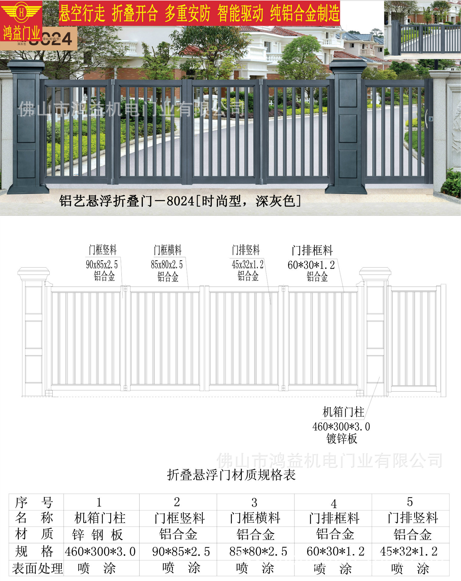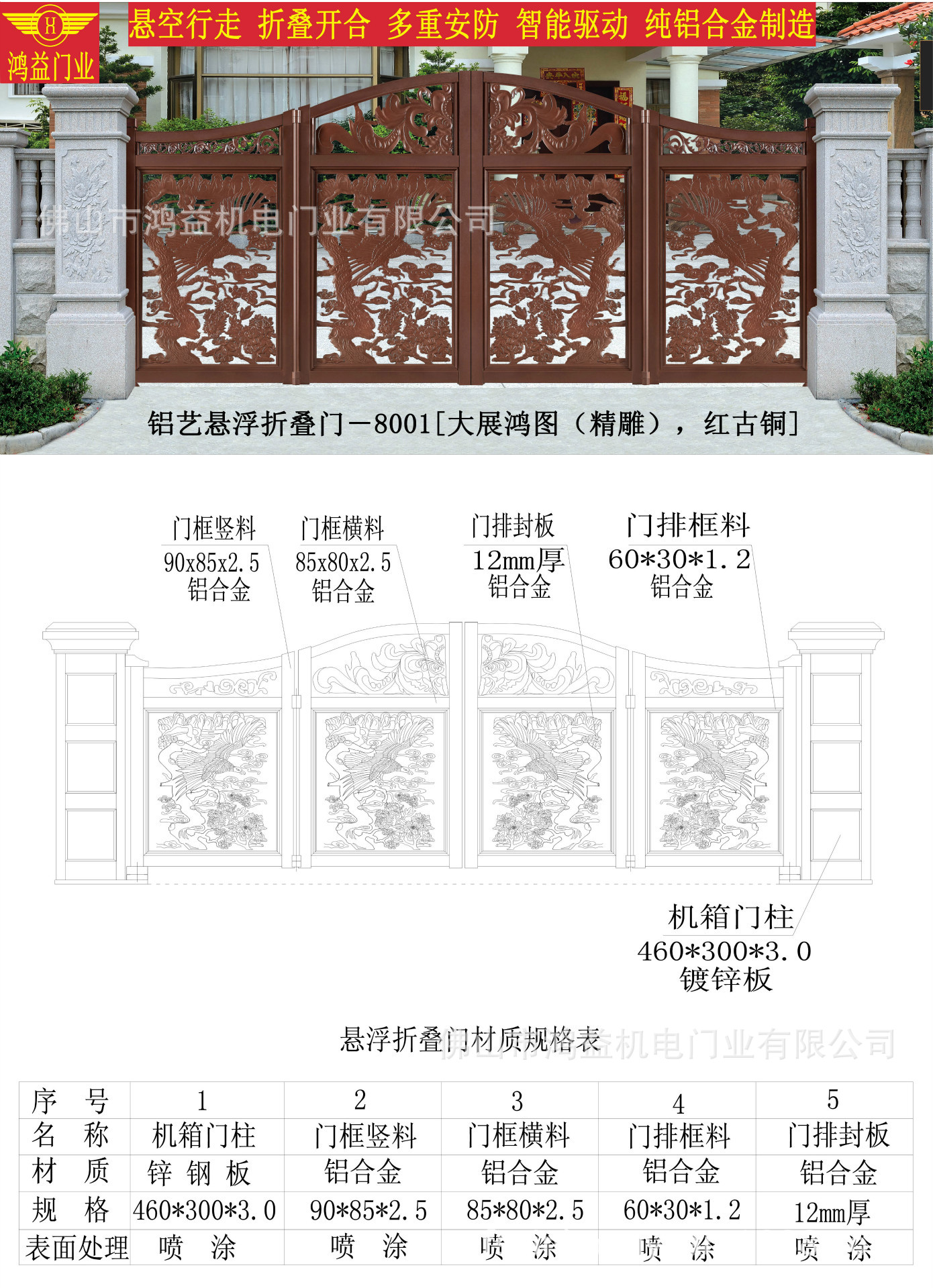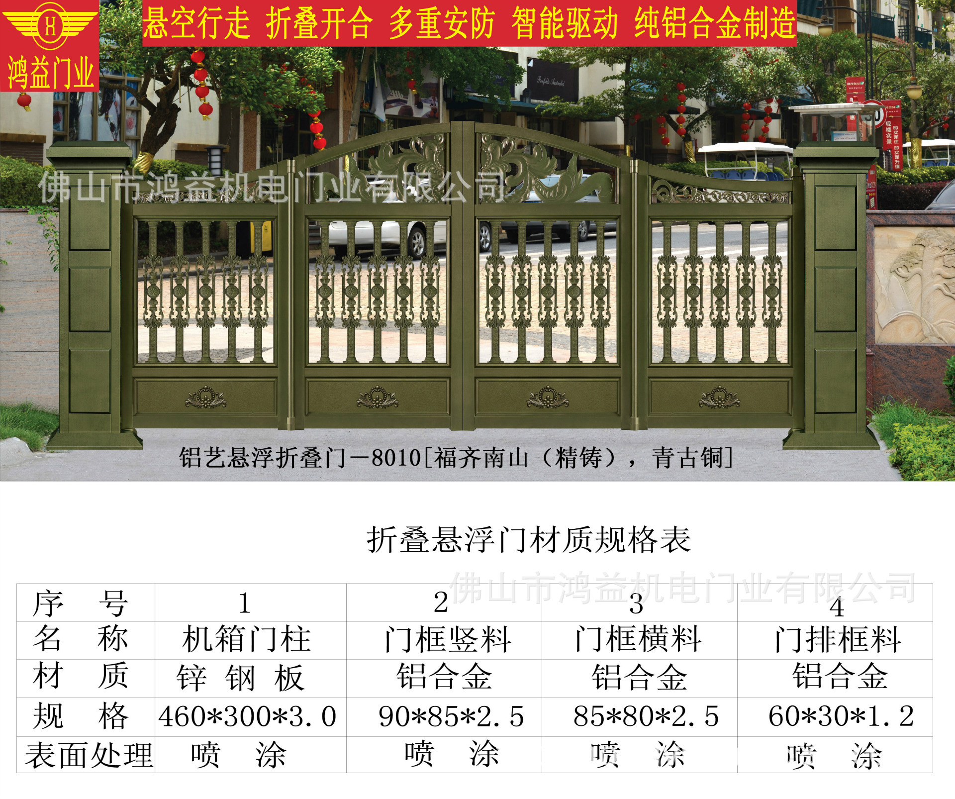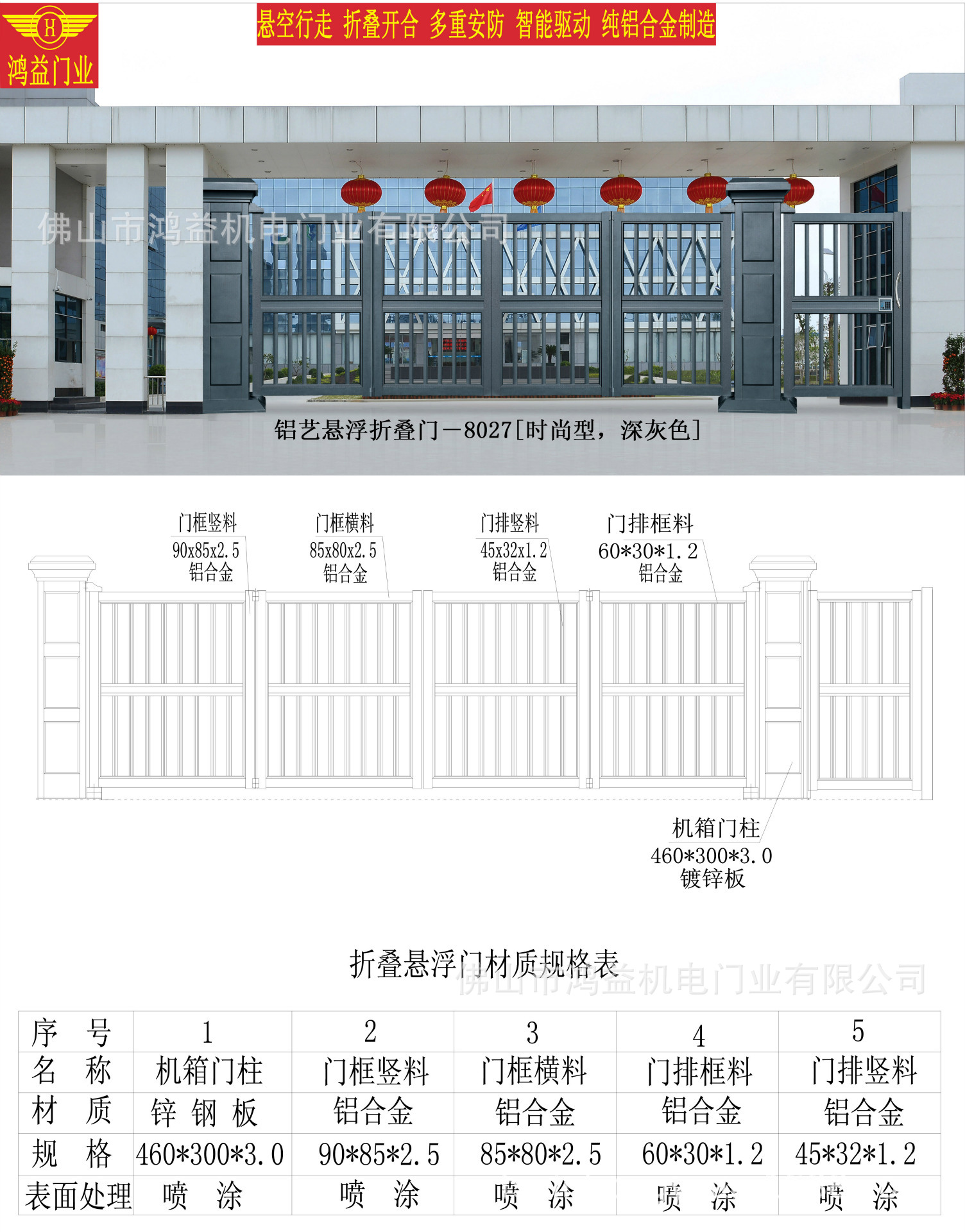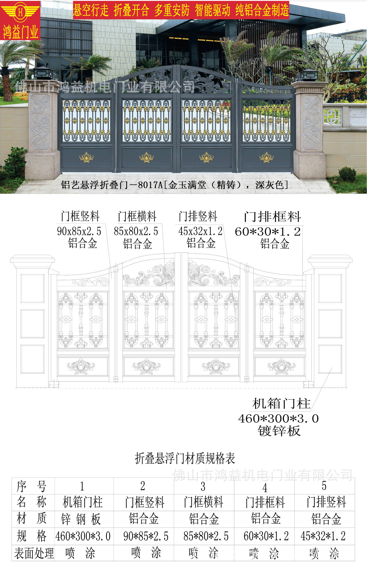 崇敬的客户:您好。我们公司在线销售多种产品型号,产品不停更新,可以根据客户要求展开定制。网站上显示的产品价钱仅供参考,愿意客户会知道。对于特定价钱,请通过电话或在线关系我们公司开展详尽咨询和谈判。我们将竭诚为您服务。鸿益机电门业智能铝艺折叠式别墅门诞生了,掀起了行业变革。世界上第一个独家专利技术,智能铝艺浮动式折叠门是鸿益机电门业公司一个震世的作,立刻获取了成功。产品一经推出便赢得了市场的赞誉和普遍认可。该产品的技术含量和性能优势是其他门产品所无法比拟的;