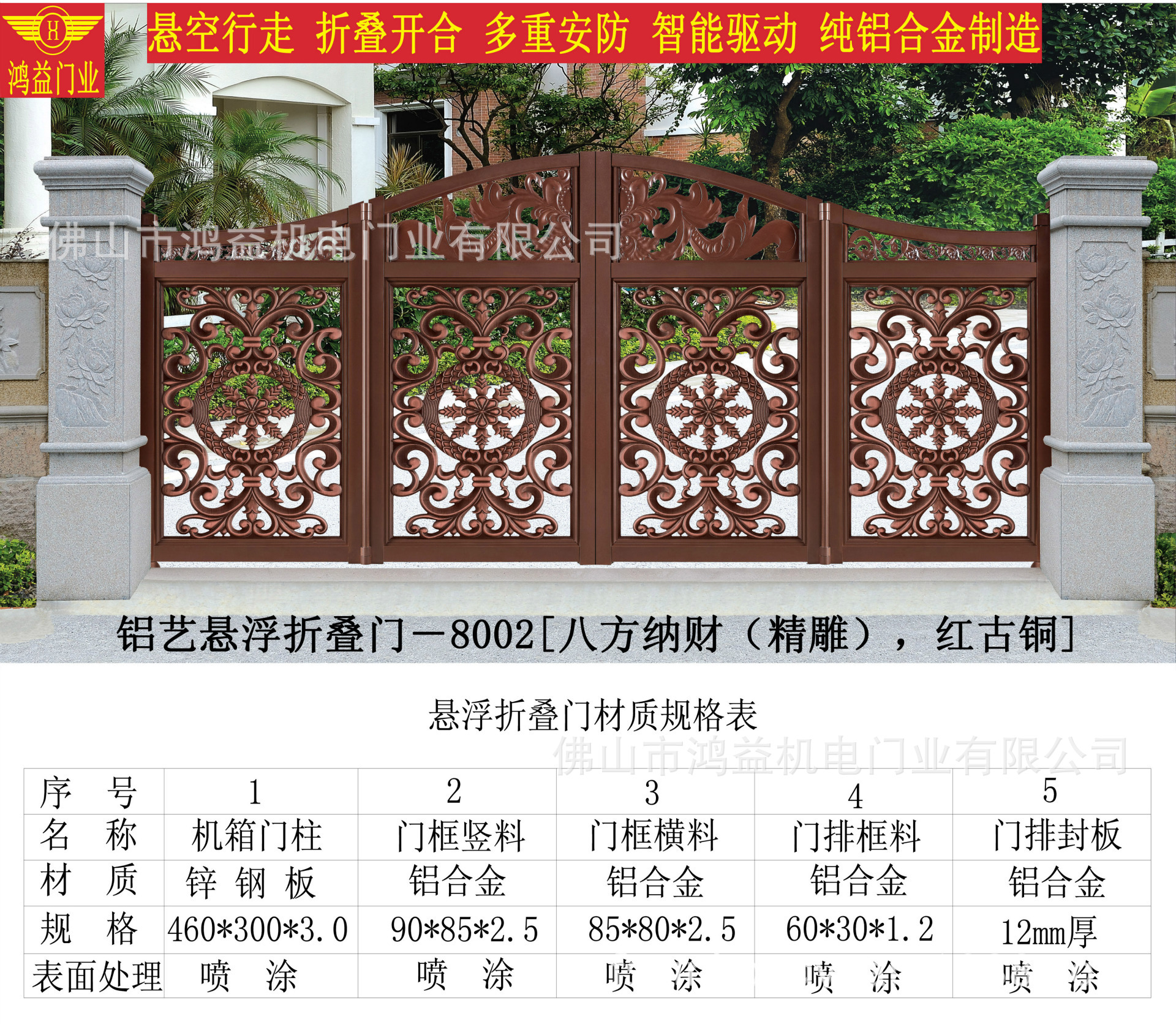 2.中国是唯一的智能铝艺折叠式浮动别墅门,具有独特的技术,精湛的工艺和精湛的工艺。