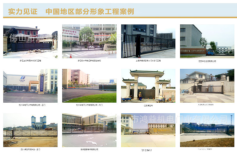 佛山市鸿益机电门业有限公司成立于2010年,中国是一家集研发,生产,销售,售后于一体的国内高技术企业,主要产品有铝艺浮动门,智能浮动门,线性吊门,智能门线性门,推拉门,自动伸缩门,围栏,停车系统,停车系统,保安岗亭,户外栅栏等。知识产权高科技产品,已获取多项国家专利。鸿益门业制造商拥有高科技专业的设计师,有力的生产管理团队;技术精湛的操作员和经验丰富的销售精英。鸿益产品在国内外畅销,并因其优异的质量,优秀的性能和美妙的外观而受到顾客的追捧。它们已成为党政机关,企事业单位,军队,学校,体育馆和高端住宅区的首选。增加“鸿益品牌”的知名度。公司以产品质量为生命,以优质服务为中心。严苛的经营标准化经过仔细划分与配合,使生产的每个环节都拥有完整的管理体系线。鸿益产品的质量取得保证,成本大大下降。弘义浮式门制造商擅长聆听市场声响,紧跟市场动态和客户需要发展趋向,与时俱进开发新的门产品。鸿艺门业不停引入新思路,引领门业发展方向。