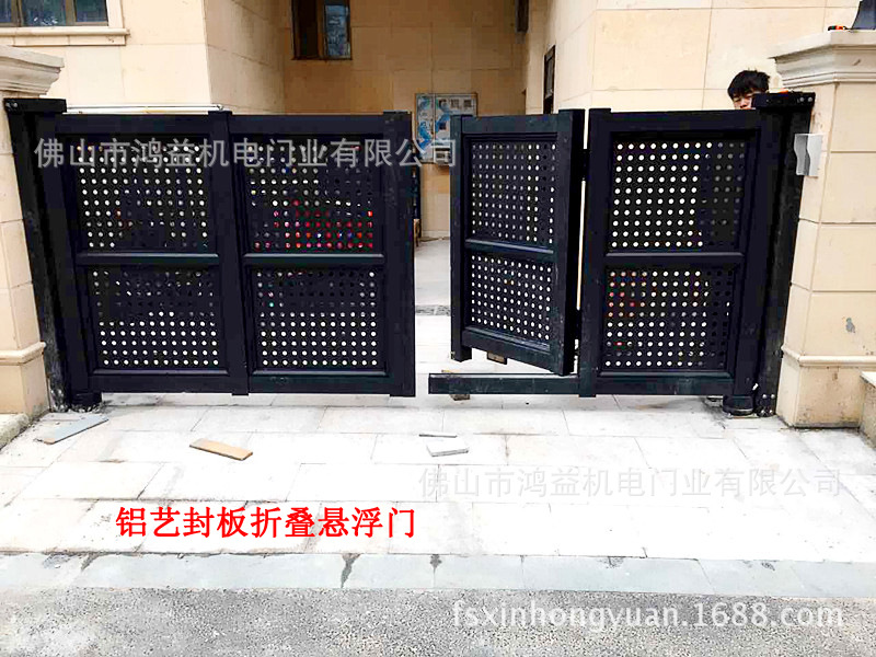 折叠式浮动别墅门是一种没有车轮可以触及地面,没有运行轨道,不需要嵌入导轨并且可以在空中行走的门。