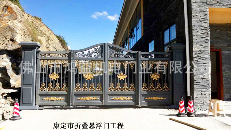 折叠式浮动别墅门适用于政府机关,企事业单位,学校,军队大型工厂,广场,体育馆,高档住宅区等场地。