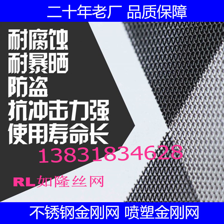 金刚网由304不锈钢丝制成,其外观受到静电喷涂的保护。304不锈钢网具有很高的防锈和抗破坏能力。经检查,抗外伤能力达2.148吨,具有较强的抗剪切和破坏能力。316l是不锈钢等级。