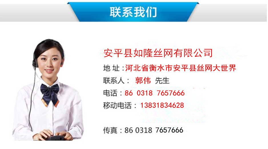 产品详情:河北安平县如隆丝网有限公司formername安平县弘庆织网厂,我们的工厂成立于1995年。坐落知名的“中国丝网之乡”-河北省安平县黄城工业区。是一家专业制造和销售护栏网,筛网,过滤器,丝网,钢网,建筑物网的大型制造商。自工厂成立以来,经过多年的管理,我们现在持有专业的生产技术,充沛的生产经验,先进的生产技术以及早熟的管理体系。我公司一直秉承“开辟,求实,团结一致,进取”的原厂企业精神上,不停健全,超越自我。秉承“以质量求生存,以声誉求发展”的企业主旨,坚称“质量第一,用户至上,诚实第一”的发展意识,在丝网行业继续创造不错的业绩,我们乐意与国内外老客户携手合作,本着真诚合作,互惠互利的规范,共谋发展!