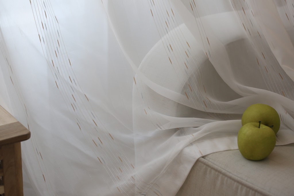 总体主要为白色,简便且用处普遍,是家用/工程窗帘的最佳纱线;