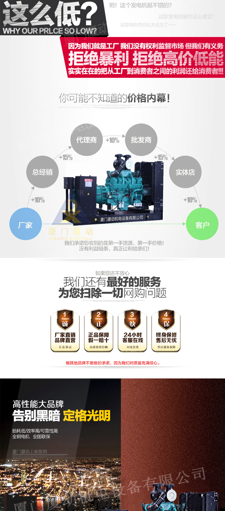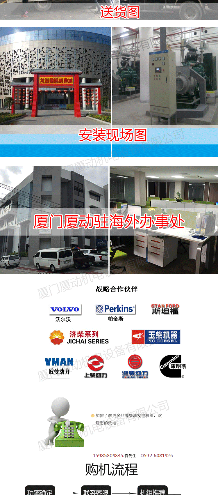 倚赖不错的商贸信誉和市场能力,该公司先后与发动机制造商康明斯,VOLVO,无锡动力,广西玉柴,山东潍柴,上柴股份协作;发电机制造商广州英格,无锡斯坦福,上海爱尔玛;控制器制造商科迈,海洋,众志等国内广为人知企业早已成立了战略性合作伙伴关系,并成为其OEM的支持工厂和特别维修站。