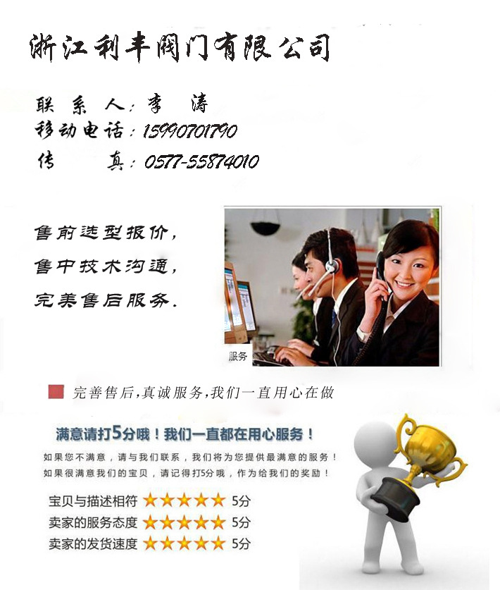 自 自公司成立以来,全体职工始终秉承“以质量求生存,以声誉求发展”的经营理念,为广大用户提供多方面,高质量,低成本的服务,并为他们提供畅顺的服务。通过ISO国际认证。公司坚信会的组织将在不久的将来成为浙江第一个阀门生产小组。