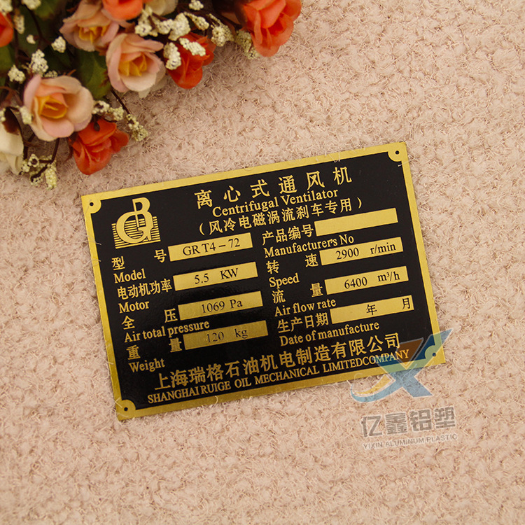 产品称谓:铭牌