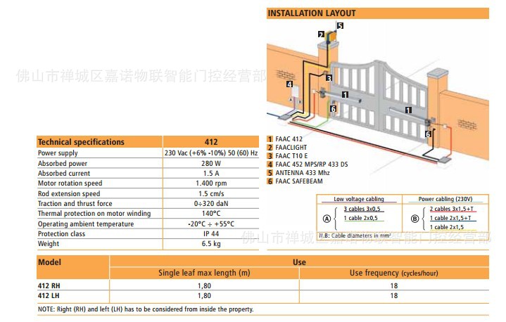 安装简便,不需要对现有负载构造展开太多调整;机电技术的使用使FAAC412最合适工作负载不重的场合。