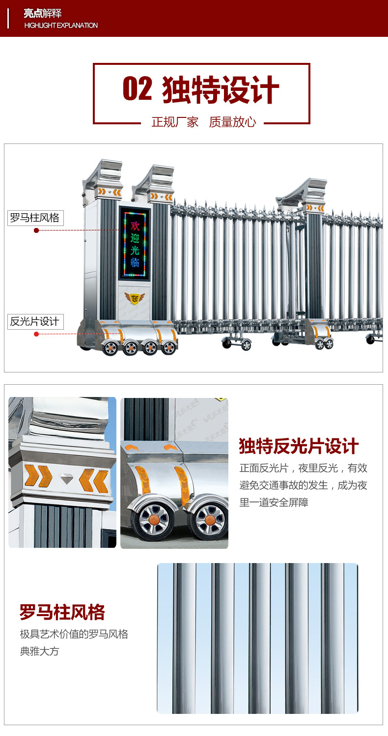 新款不锈钢伸缩门小区学校工厂公司门遥控电动伸缩门厂家直销