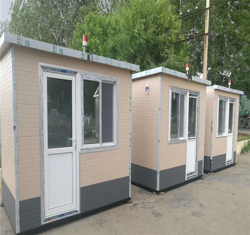 治安岗亭由钢结构龙骨,衬里保温板,复合板,外部用到彩钢板,不锈钢等构成。钢框架主要由轻质和硬质金属合金制成。