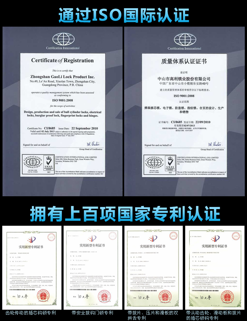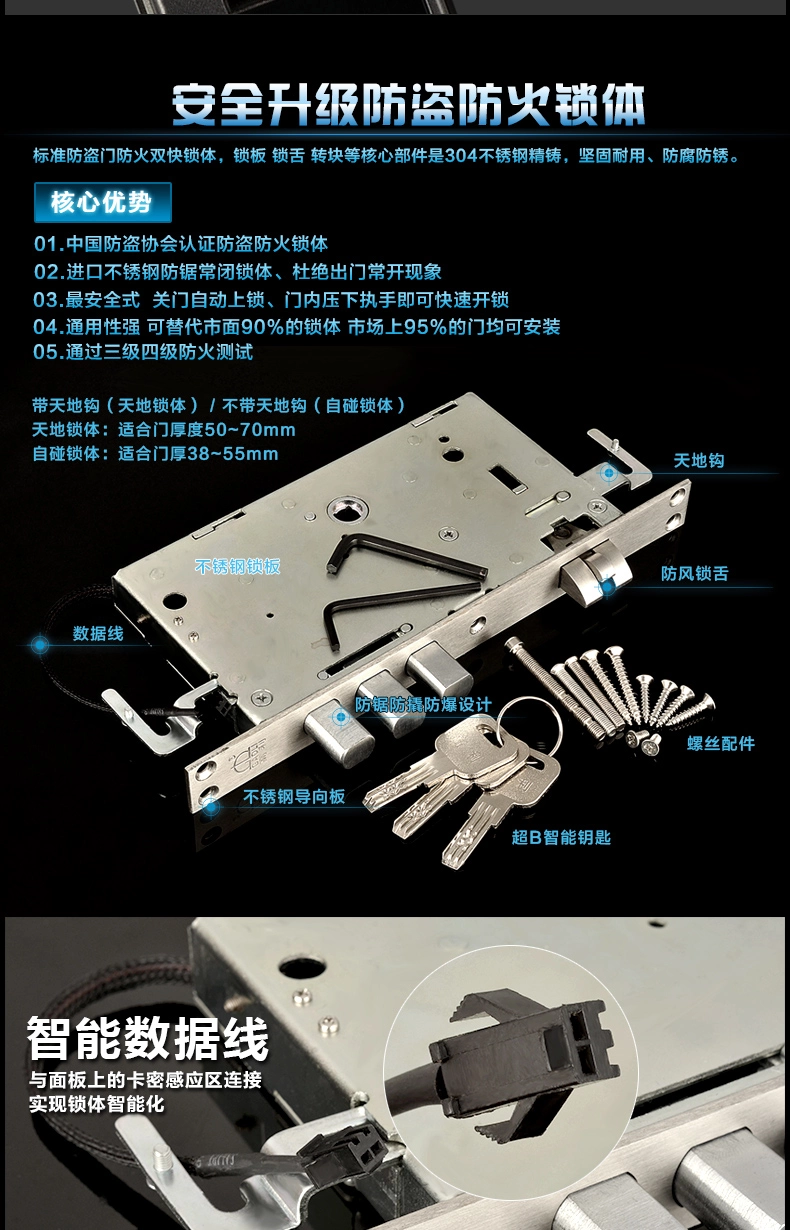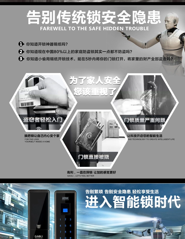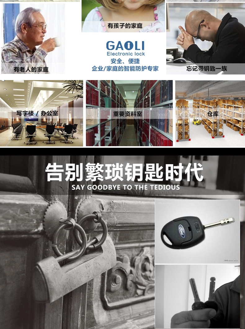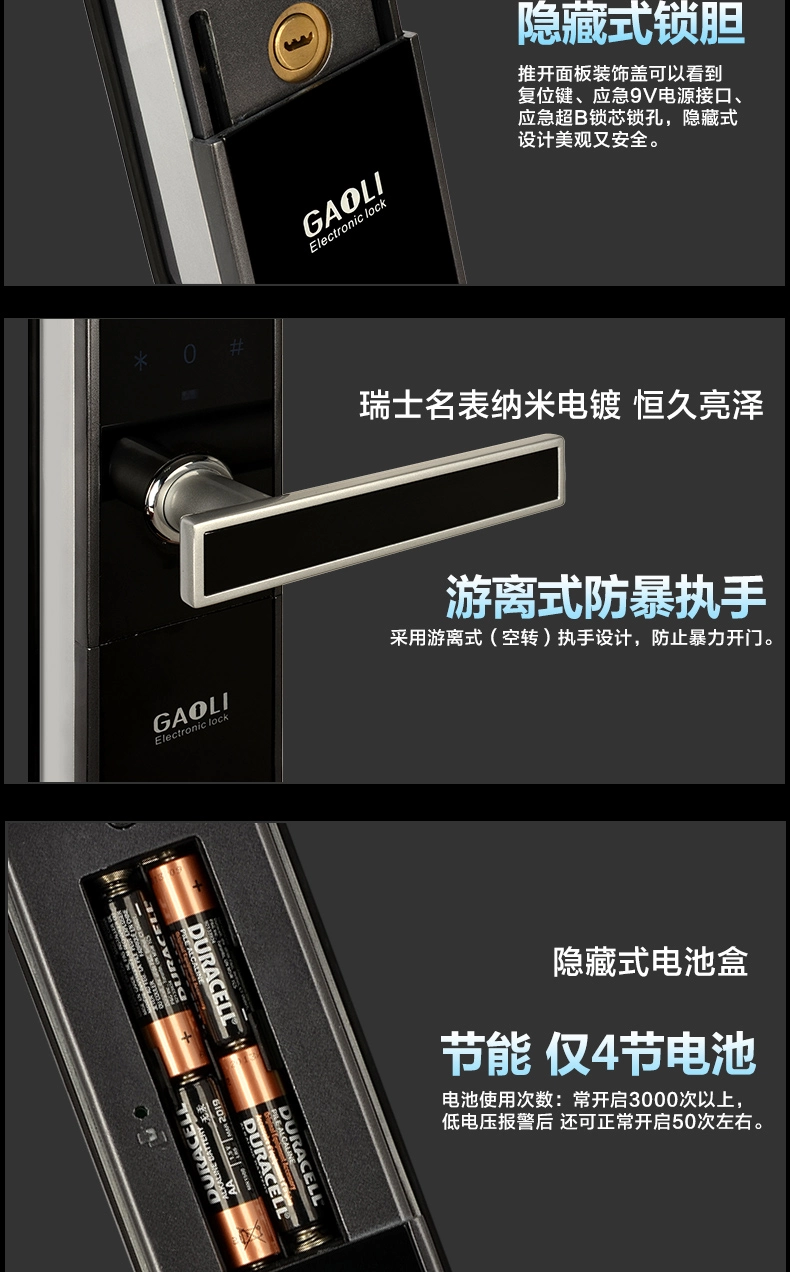 4.三种单独的开门方法:指纹+密码+机器钥匙。