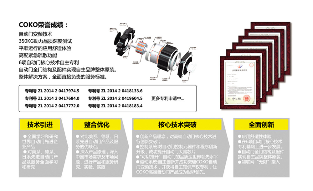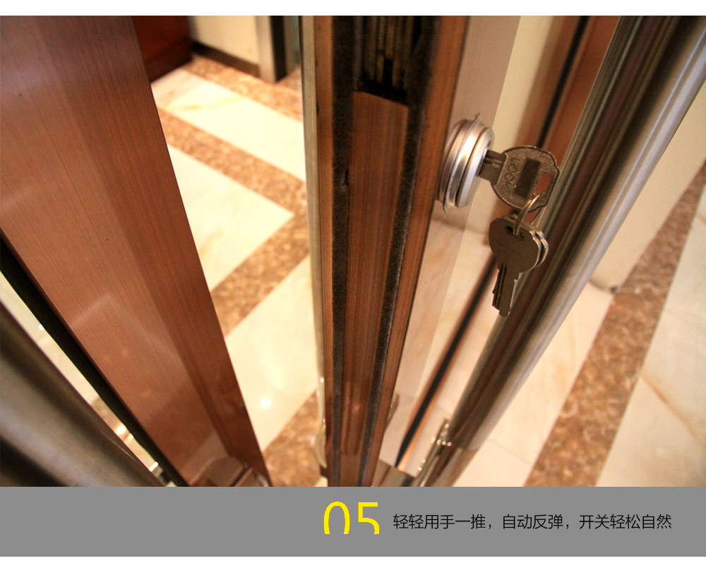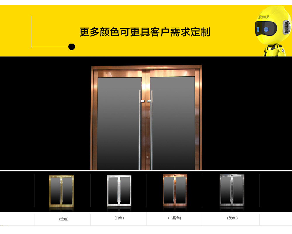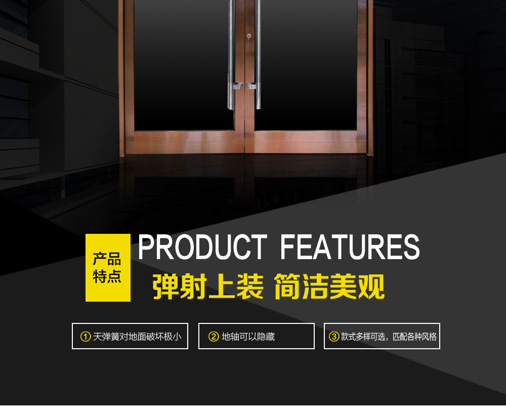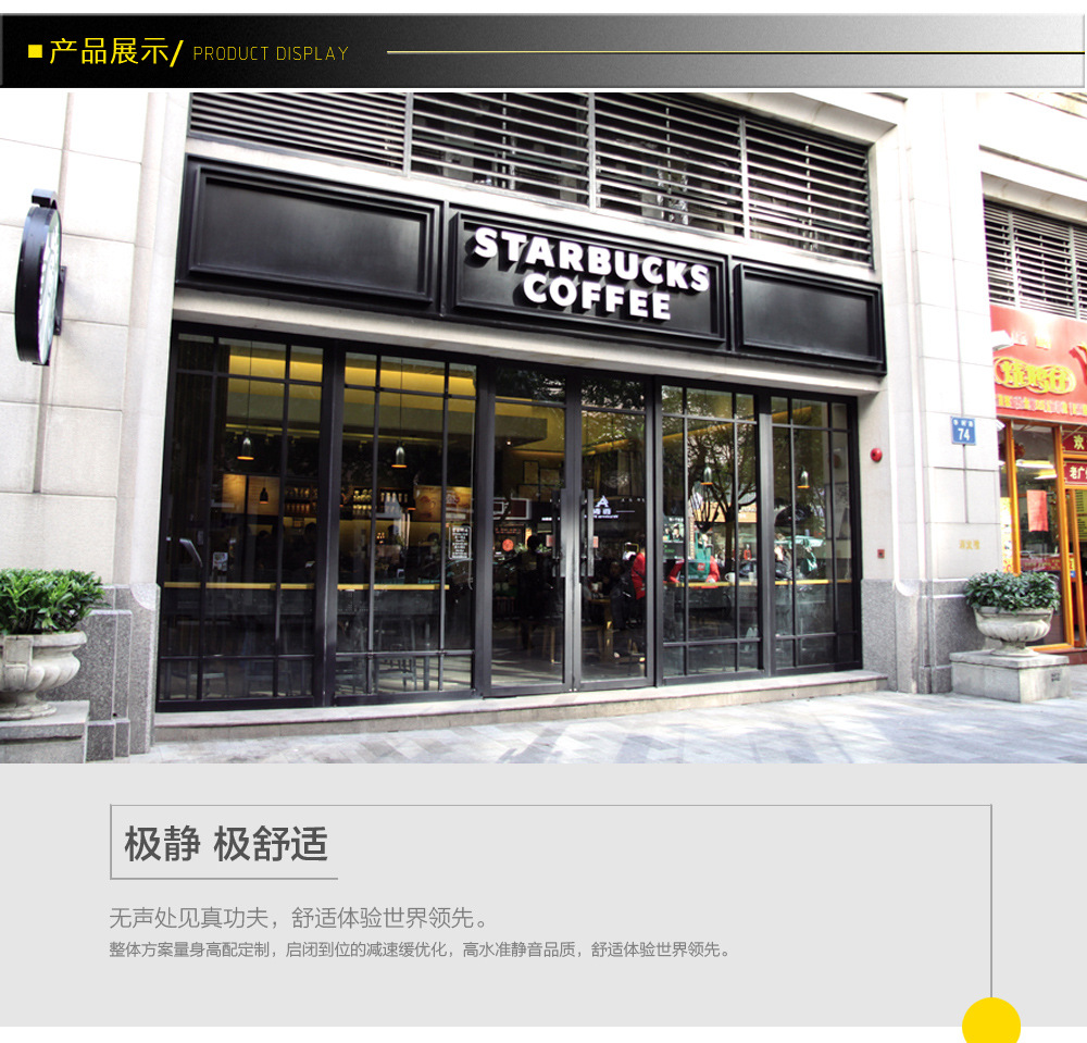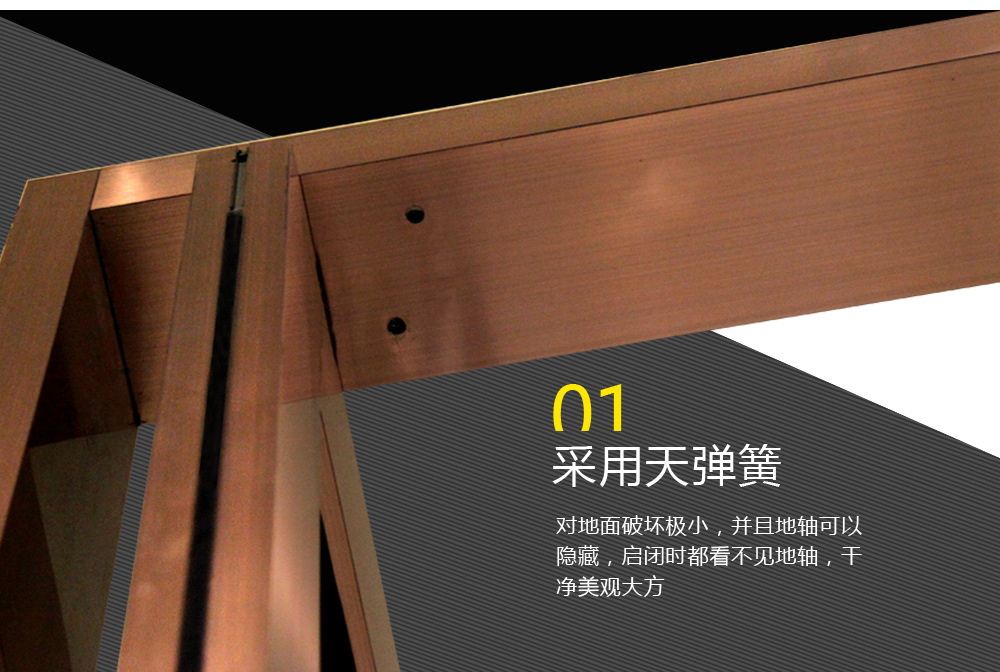 COKO商业门使用天弹簧构造,只需将地轴安装在地面上,对地面的损害就很小,而且可以隐匿大地,开合时看不到地轴,干净和漂亮。