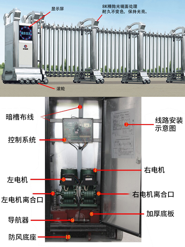 1.履带电动机(电动机,门需轨道,轨道是可选的:实心方钢或轨道钢)