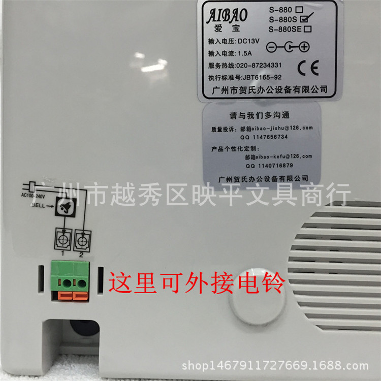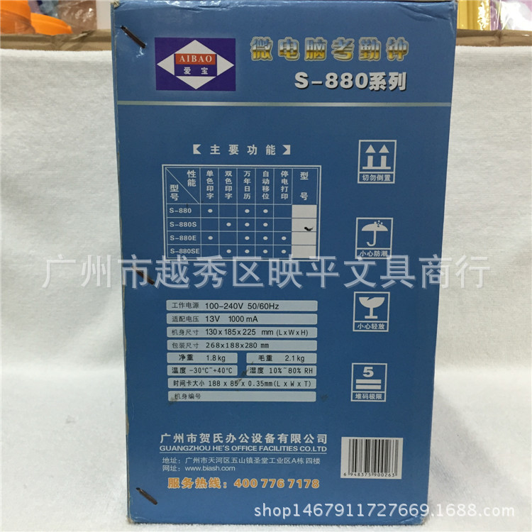产品详情:爱宝智能考勤机S-880双色打印*自动吸卡*对时走时*微电脑考勤钟series
