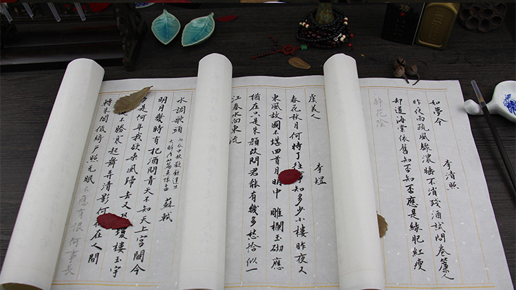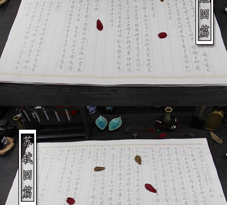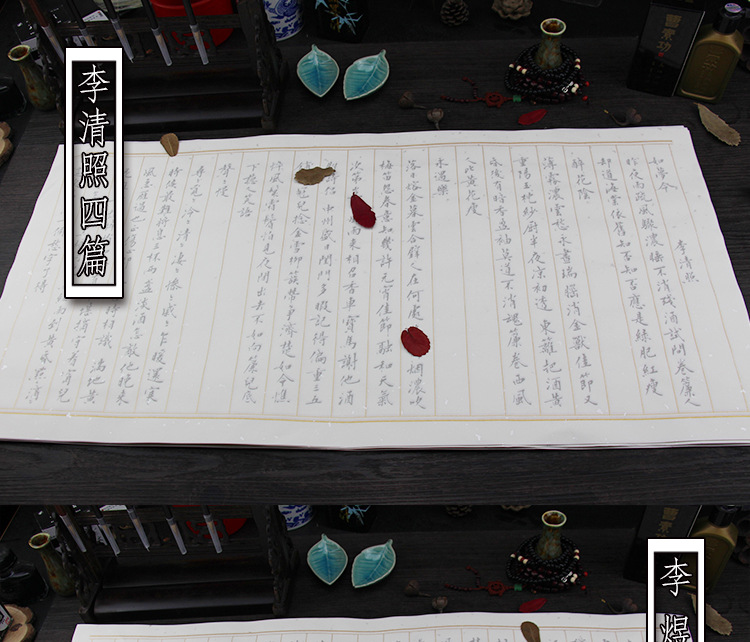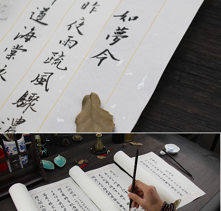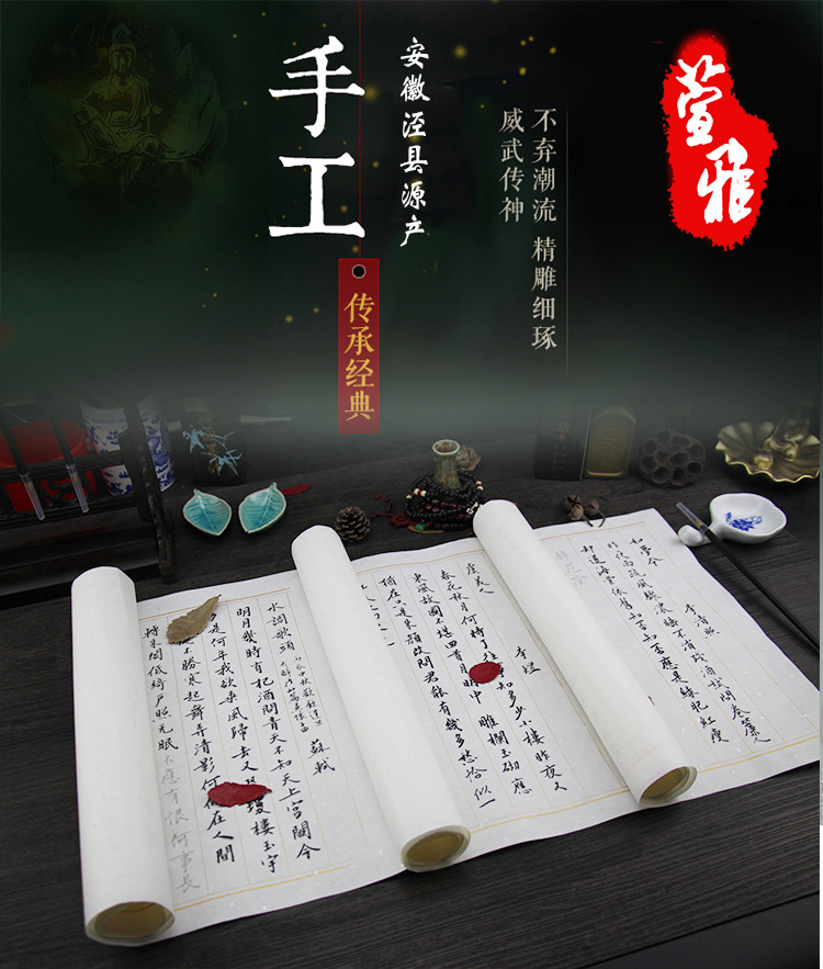 “功用”:由确实的手工宣纸制成,润墨,但不模糊不清,纸质柔软细致