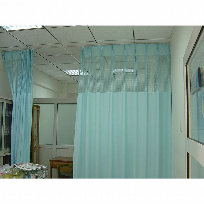4.通风:医用隔断帘上有网孔,通风孔和空调机风可通过网孔渗透,开展通风;隔断帘的网在洗涤后不会破裂,不会褪色,并且耐污染。
