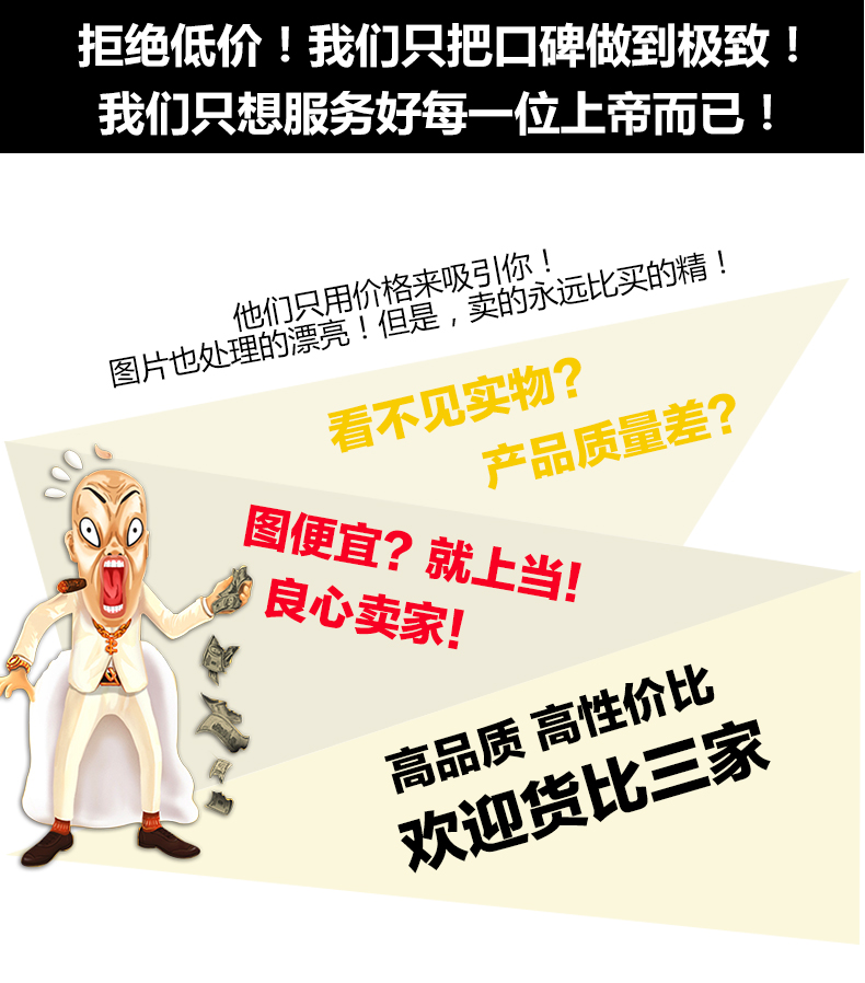 4.本店货品在出厂前早已过工厂技术人员的检查。在发货前,伙计会精心检查商品是否正常,但是是由于使用失当或其他不可抗拒的因素(例如自然灾害)造成的。)等,本店不承担任何义务,买家应对上述行为造成的其他损失(例如邮费)负责