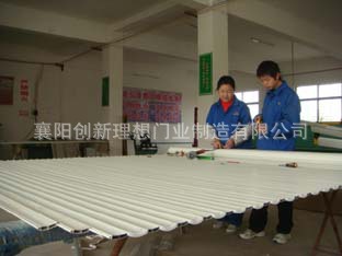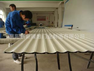 工作原理:多联动门片串联连通,固定在导轨上,以门上方的卷轴为中心上下旋转。