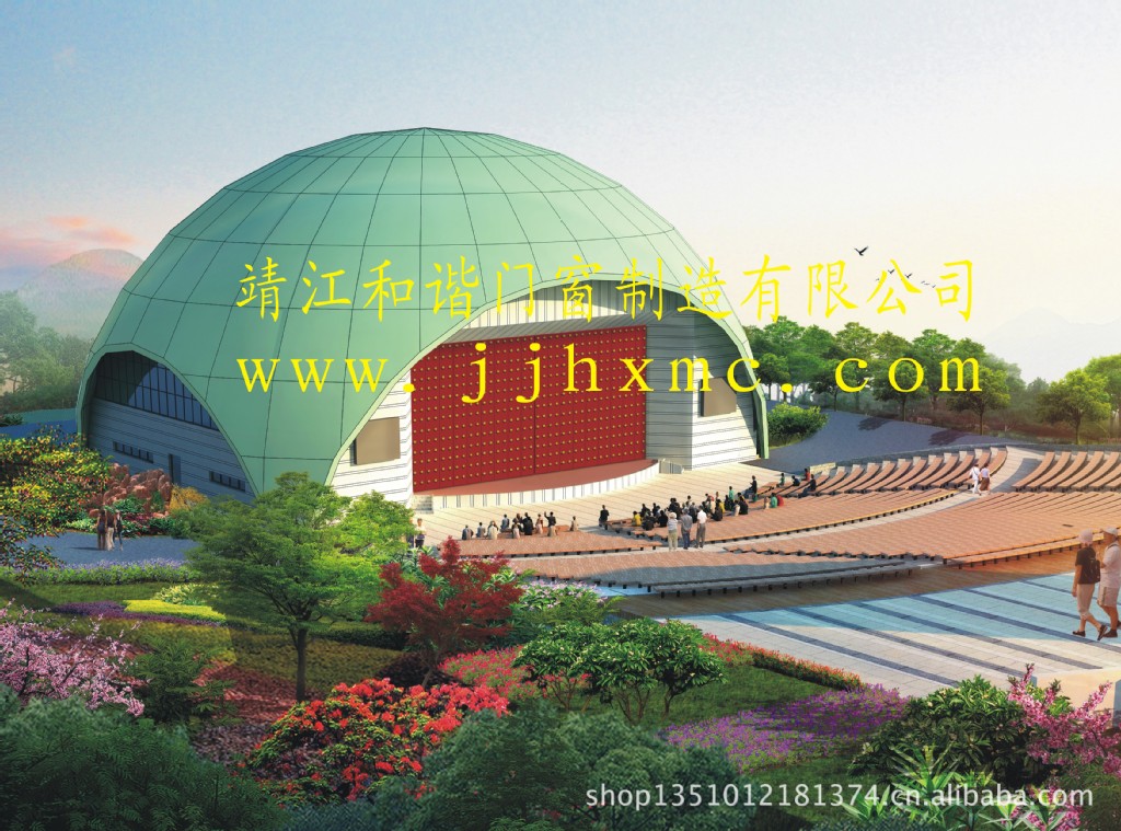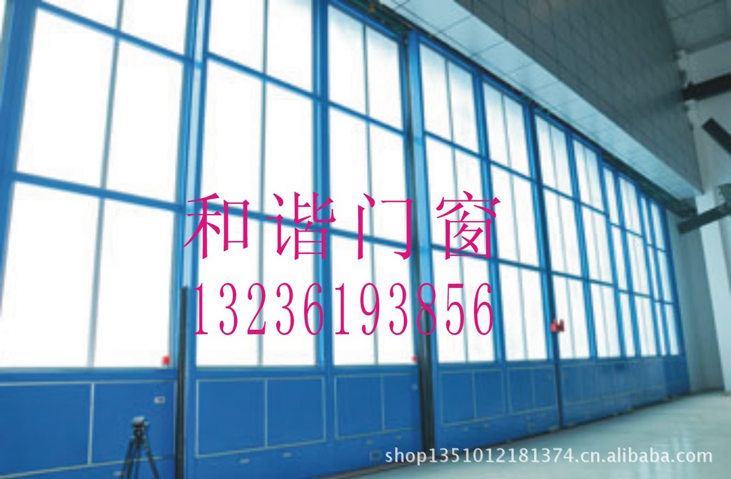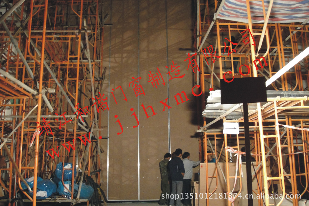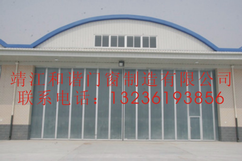 门体由通过铰链连结的多个门扇构成。当敞开和关闭时,门体沿着上下拱形轨道移动到垂直于门体壁的另一壁,因此门孔两侧的空间很小;双轨制导,运行安定,抗风压能力强。