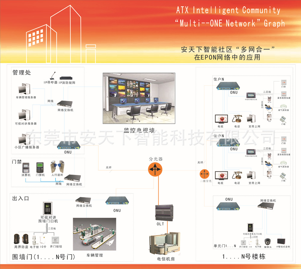 (5)一个网络具备多种功能,一个网络具多种功能:强劲的网络扩展能力(例如智能家居,ip摄像机,广告播放器,ip社区广播,访问控制卡,视频监控,停车场管理系统,安全警报系统),EPON网络发展)