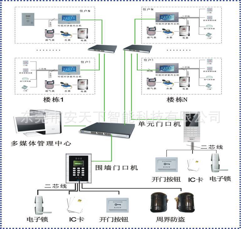 一卡通系统主要由管理中心,门口电话或门禁机组成。该系统主要有着以下功能: