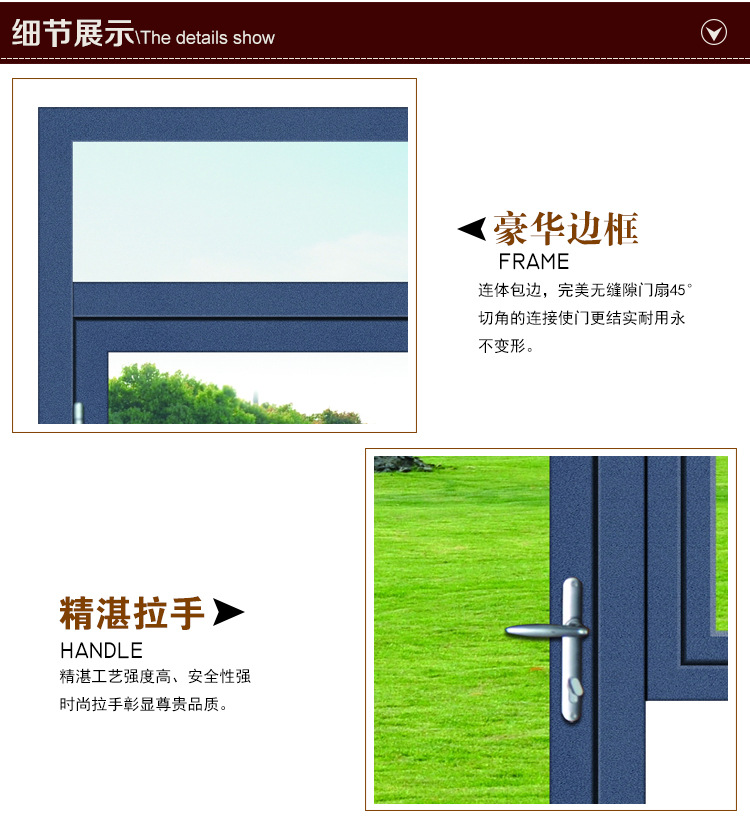 产品详情:公司简介:栢福门窗厂是专业的外贸研究实用新型专利证书,高端铝合金门窗,迅速的现场设计和绘图,各种式样的设计,落地门窗,各种日光屋子构造和方案,室外,幕墙等。设计和生产以保证产品设计,客户提供尺码切割,切割,表面处理,组装,运输,并确保高质量的产品。