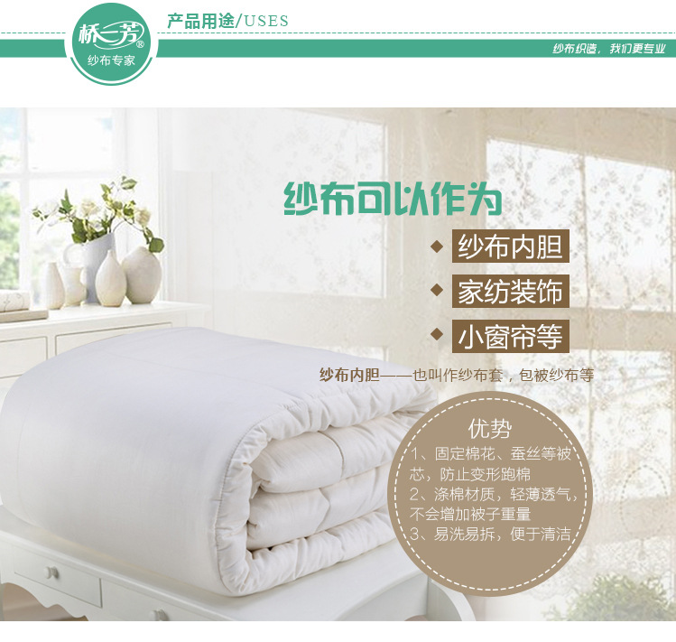 - 主要用途口罩纱布 被套纱布 包被纱布