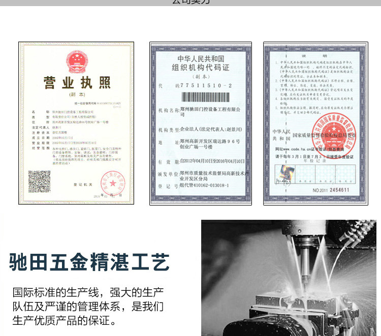 优异的团队,不错的声誉和现代化的管理使郑州驰田门控设备工程有限公司以合理的价位为客户提供世界上最先进的门禁产品。协助客户选项最具成本效用的自动门设备是赤田人的最大优势。