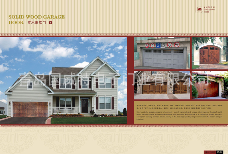 实木车库门又称钢木车库门,是翻板车库门的一种。实木车库门的特征是一种保暖,不仅外观华丽,雕刻精美,而且样式多样,个性化设计可以满足不同客户的需要。选用木料:老美松,al木,胡桃木,沙比利等进口实木。