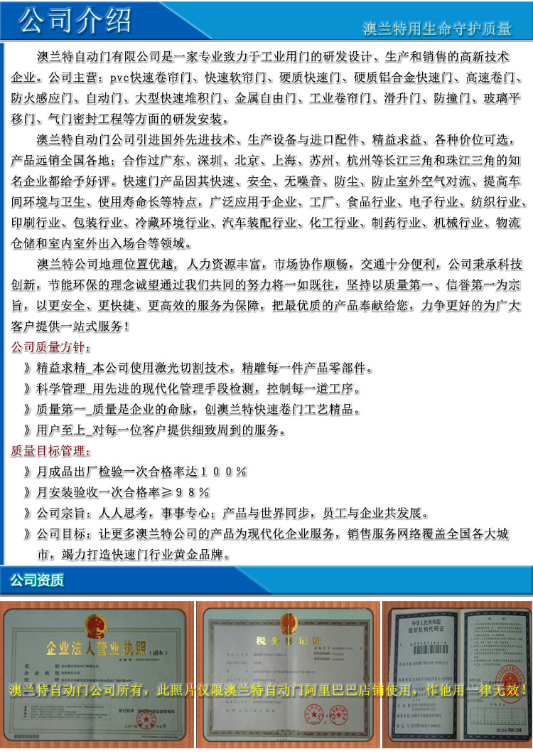 新产品快速门厂家定做蓝色PVC快速卷帘门安装室外防风无尘车间高速卷帘门¥12300.00