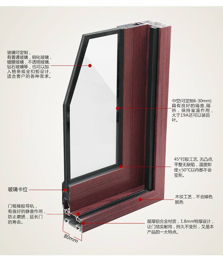 产品详情:RGNL-80#夏日隔热门冬日暖门铝合金断桥门推拉平移定制门