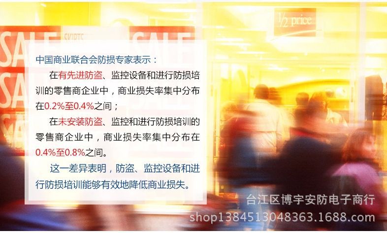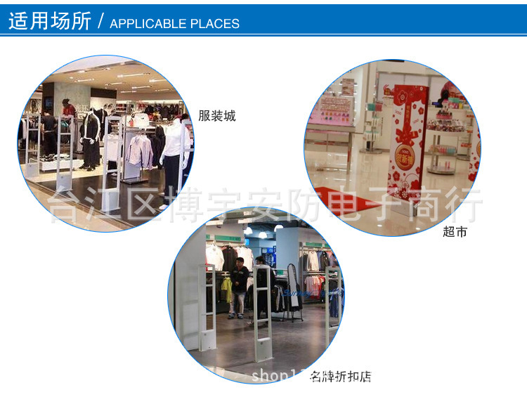 【产品称谓】EAS货电子防电系统(ElectronicArticleSurveillance)防盗器,探测器,防盗仪,探测器,防盗天线,出入口支配,防盗门,防盗门,报警器,传感器警报器,电子门。[组件]1.无线电射频检测器(通常称为:防盗天线,检测门,检测器等),通常安装在收银机的门口或前面2.卸钉器(取下)产品中的硬标签一种通过开锁器掉下来的工具,通常安装在收银台的侧面。解码器解码板(使软标签失灵的装置,很大行其道