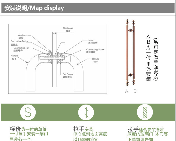 应用范围:玻璃门,木门,铜门铝合金门有框门和其他类别的门