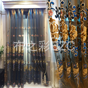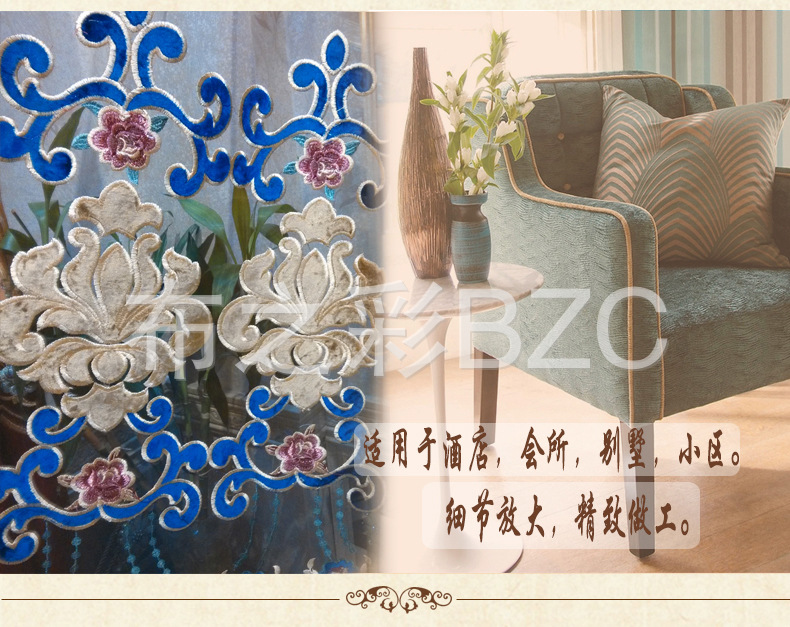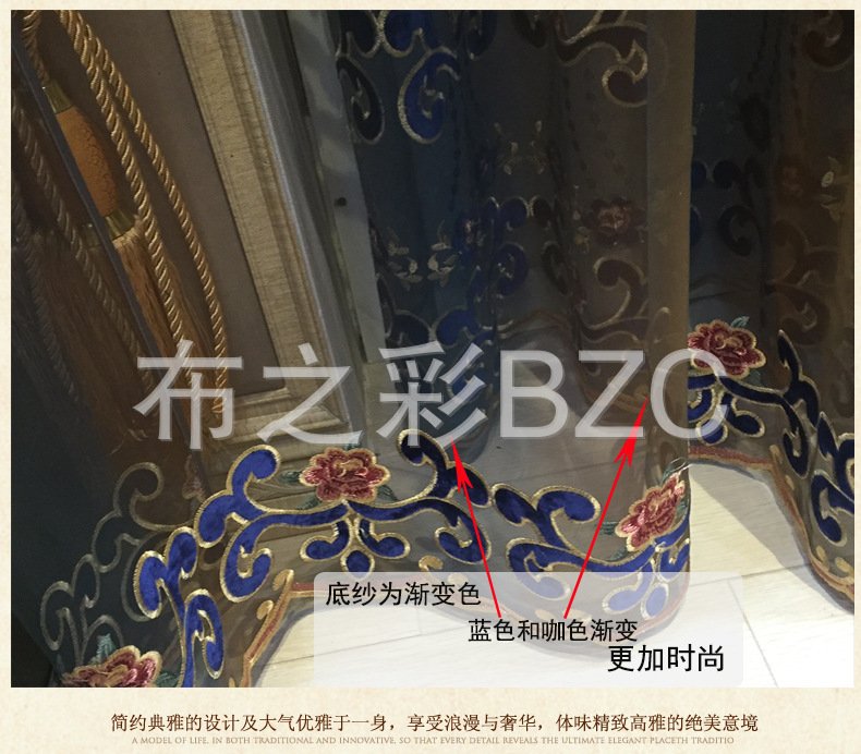 高端欧美风格渐变蓝咖啡色意大利贴绒绣花纱厂家直销批发窗帘布料¥76.00¥91.2