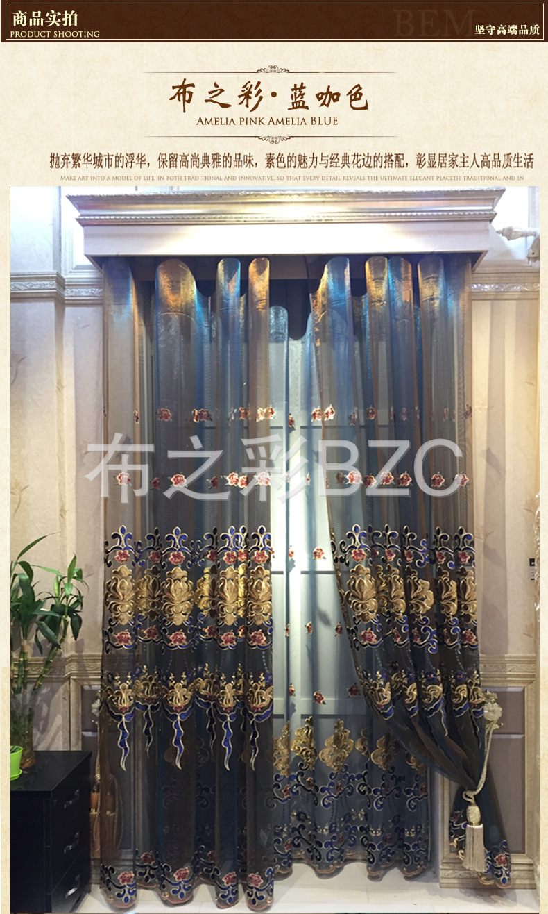 高端欧式定制社区别墅婚房咖啡色底色玫瑰绣花窗帘特点热销样式¥28.00¥33.60